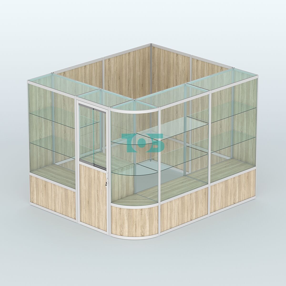 - Павильон имеет две застекленные стороны и две глухие стенки.