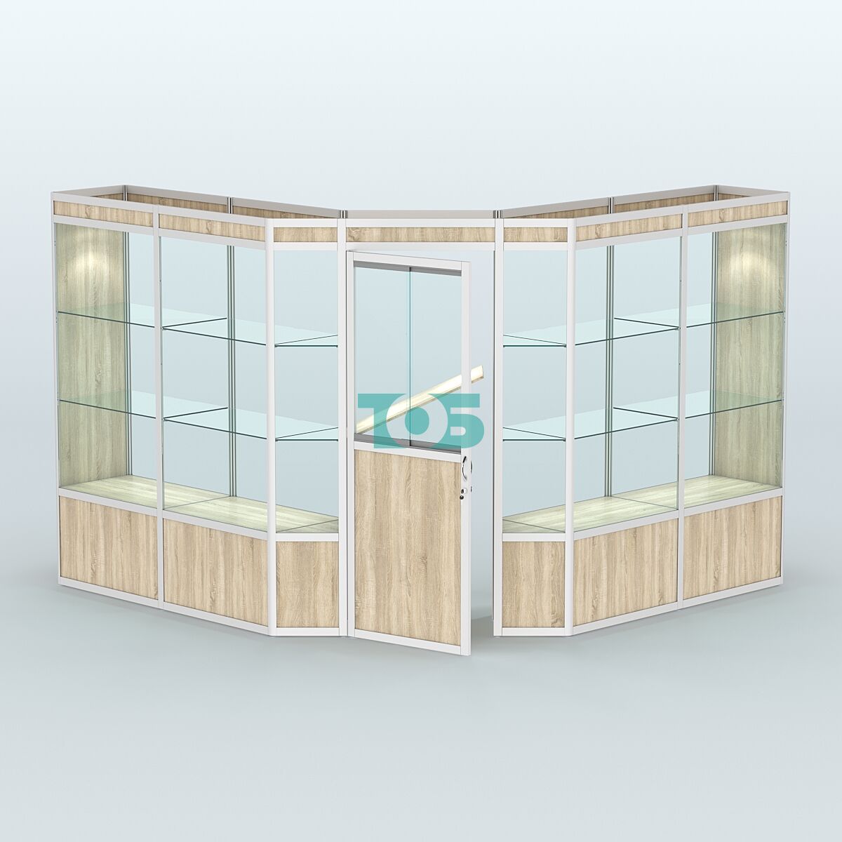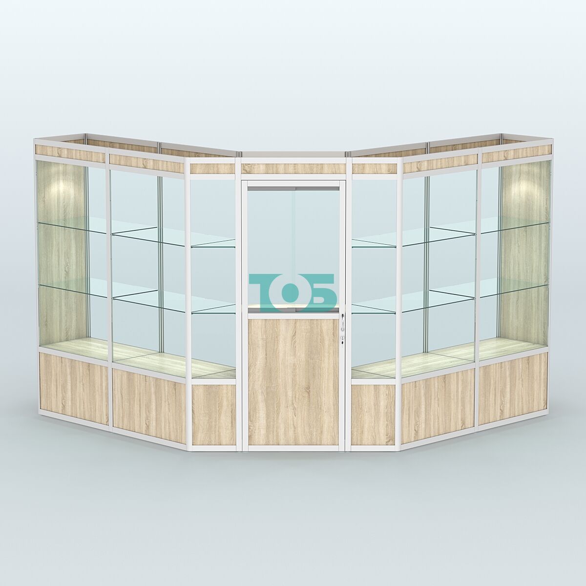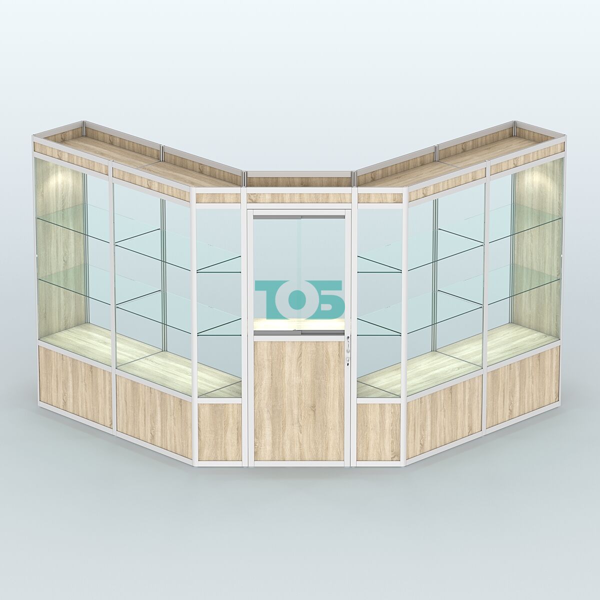 - Павильон имеет Г-образную форму, два угла со стороны фасада имеют трапециевидный скос.