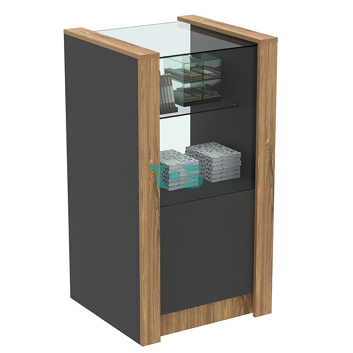 • Прилавок из ДСП Модерн №3-600 небольшой с прозрачной полкой, Темно-серый и Дуб Золотистый