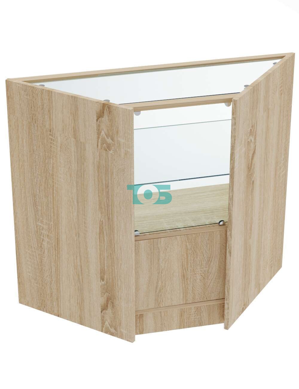 Прилавок угловой №12 (внутренний угол) сочетает в себе практичность и эстетичный внешний вид, что делает его отличным выбором для торговых помещений.