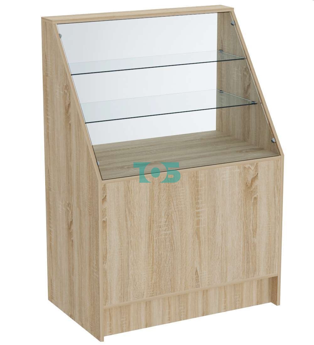 Удобство в использовании: открытые стороны прилавка облегчают доступ и обслуживание клиентов, а стеклянные полки обеспечивают удобный обзор и доступ к товарам.