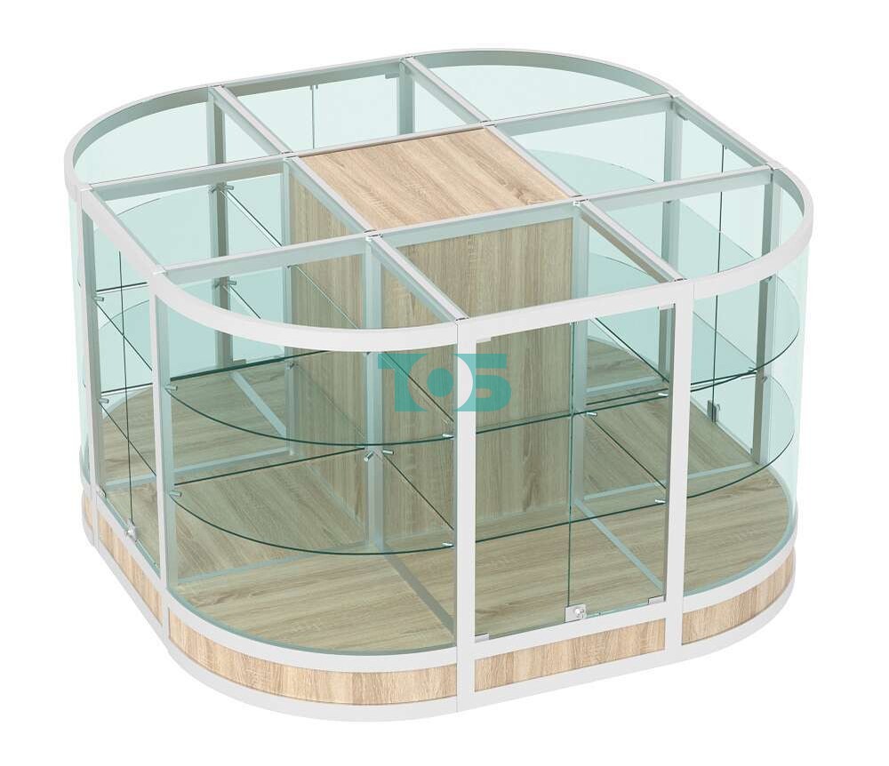 - прилавок-островок квадратной формы с закруглёнными углами на подиуме;