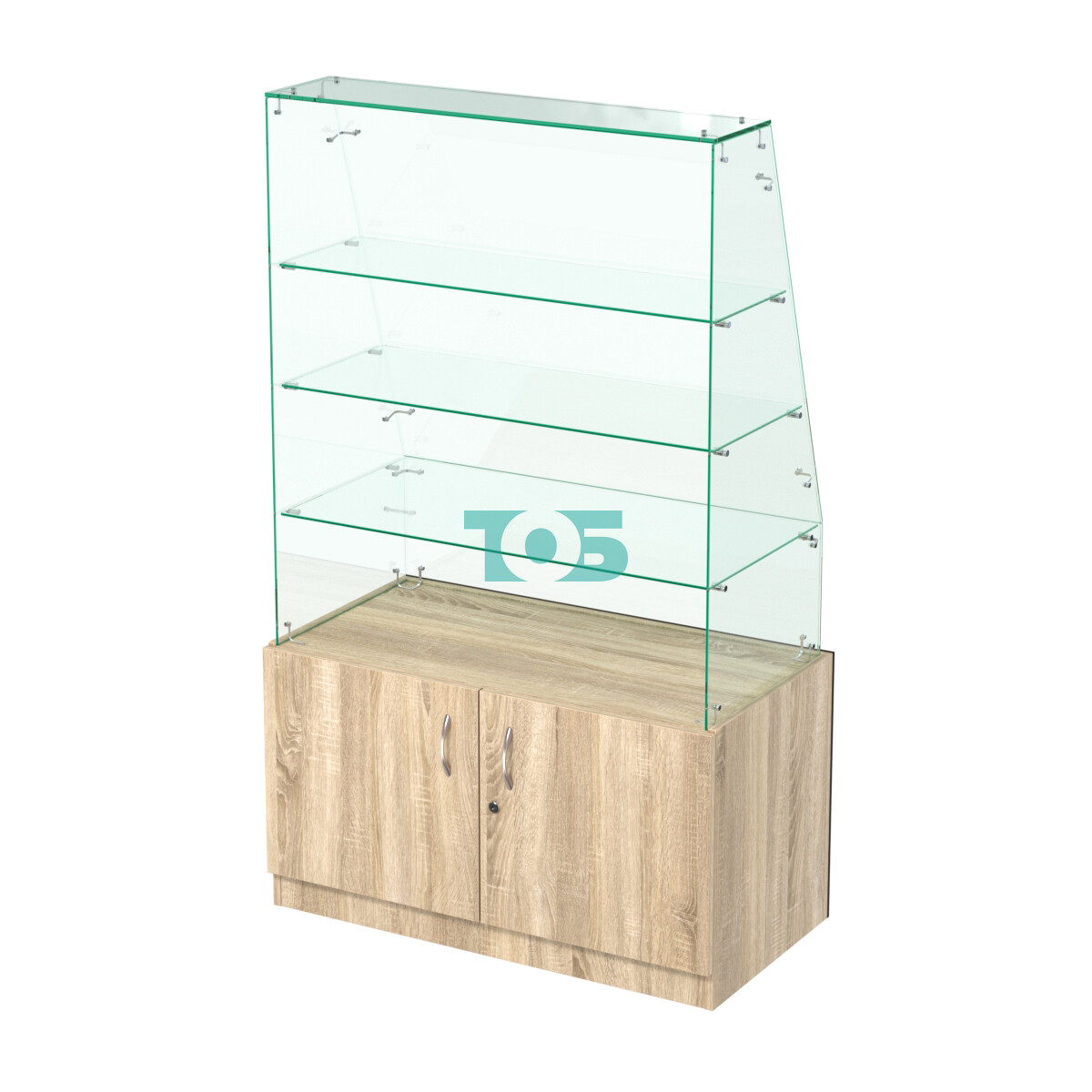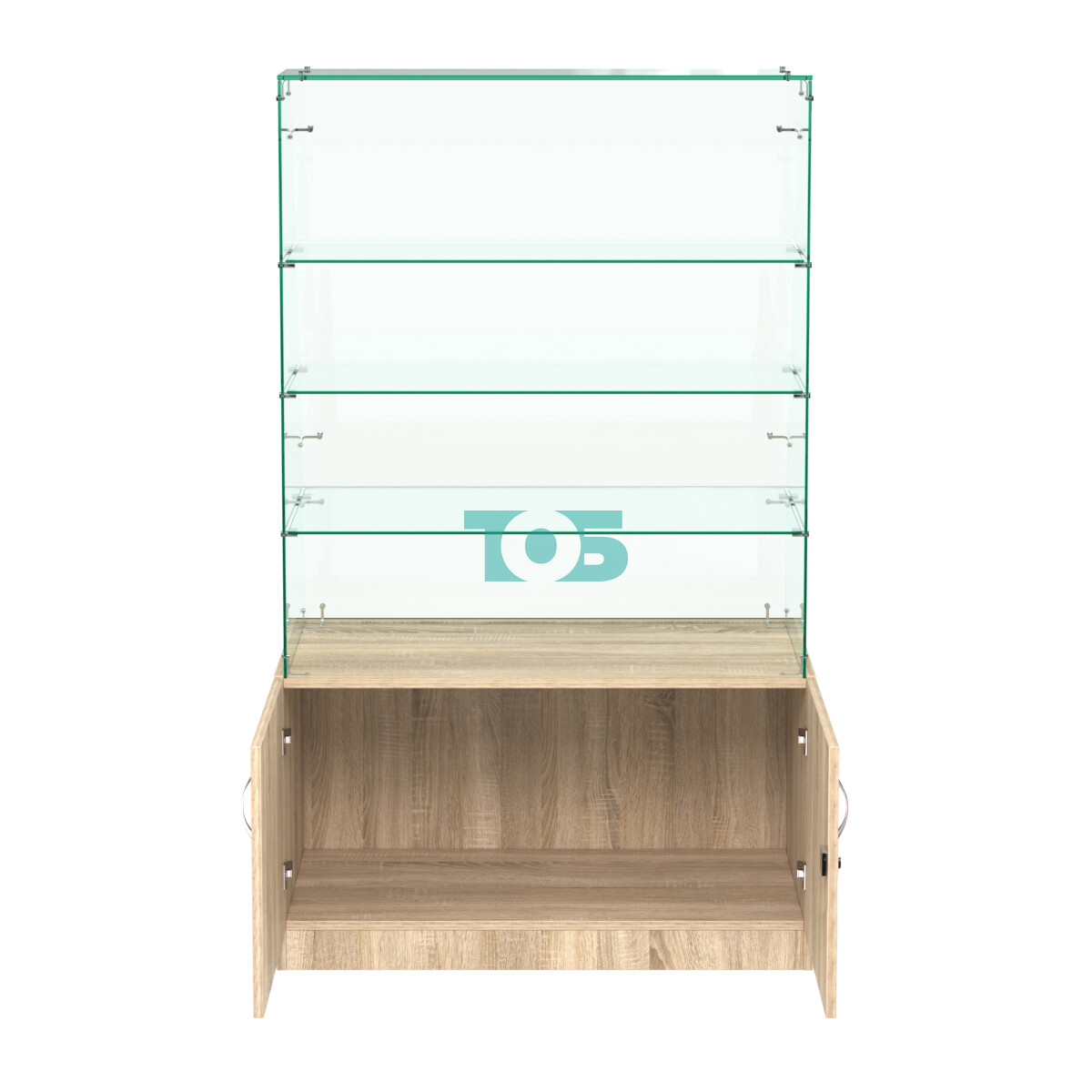 - со стороны продавца прозрачная часть открыта (дополнительно по желанию клиента могут быть установлены распашные или раздвижные стеклянные дверки);