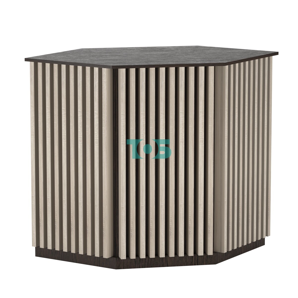Торговый стол-прилавок шестигранный с планками серии ВЕРТИКАЛЬ №22 сочетает в себе стильный дизайн и функциональность, что делает его идеальным выбором для магазинов, стремящихся выделиться и привлечь внимание покупателей. Благодаря возможности выбора различных цветов и дополнительным опциям подсветки, этот прилавок станет ярким акцентом в вашем торговом зале.
