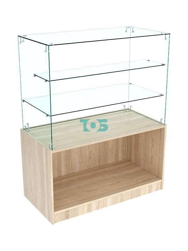 Прилавок «Истра» с двумя стеклянными полками №7 (открытый) сочетает в себе функциональность и эстетичный внешний вид, что делает его отличным выбором для организации торгового пространства.