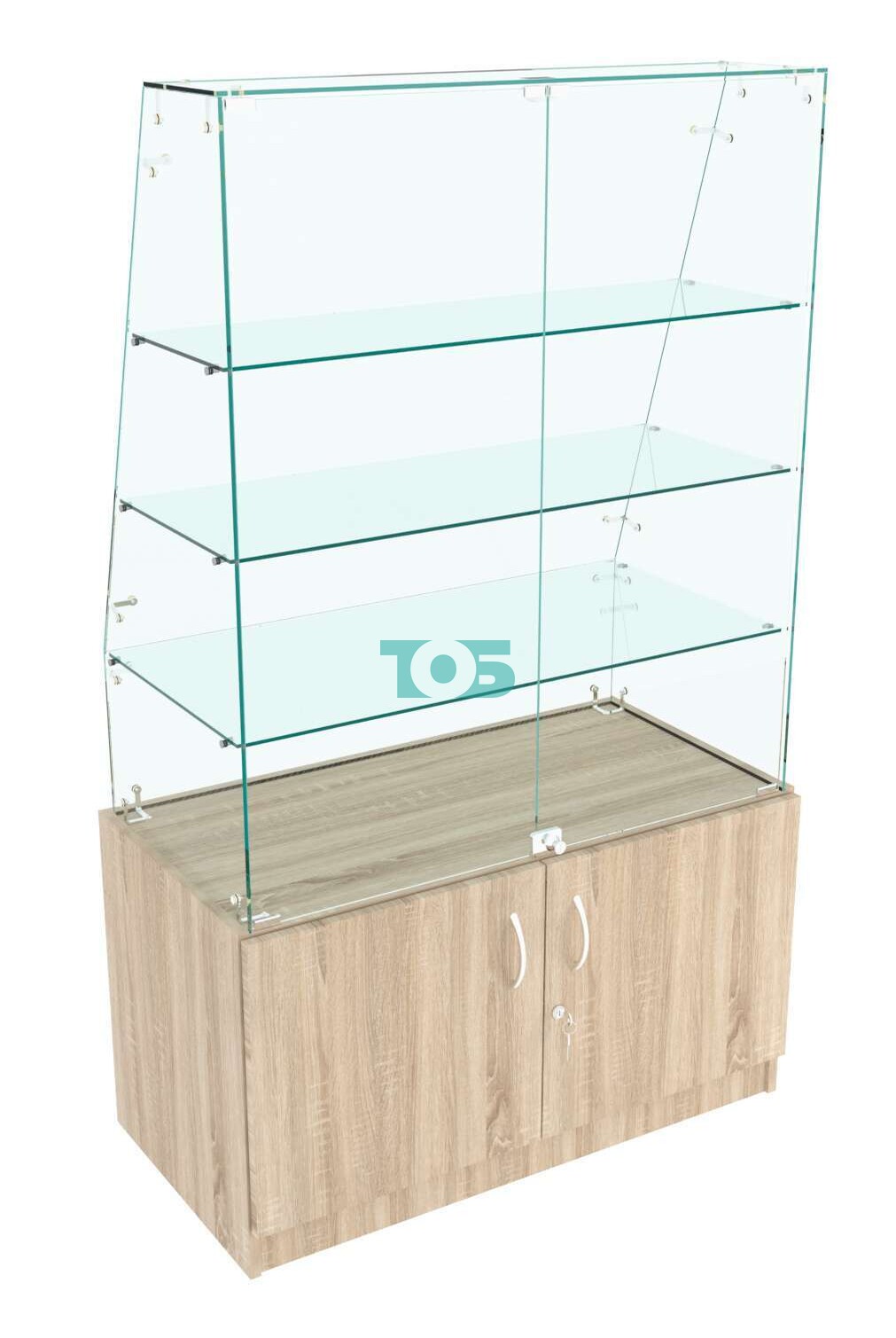 Фасадная стенка: прозрачная, под наклоном к покупателю.