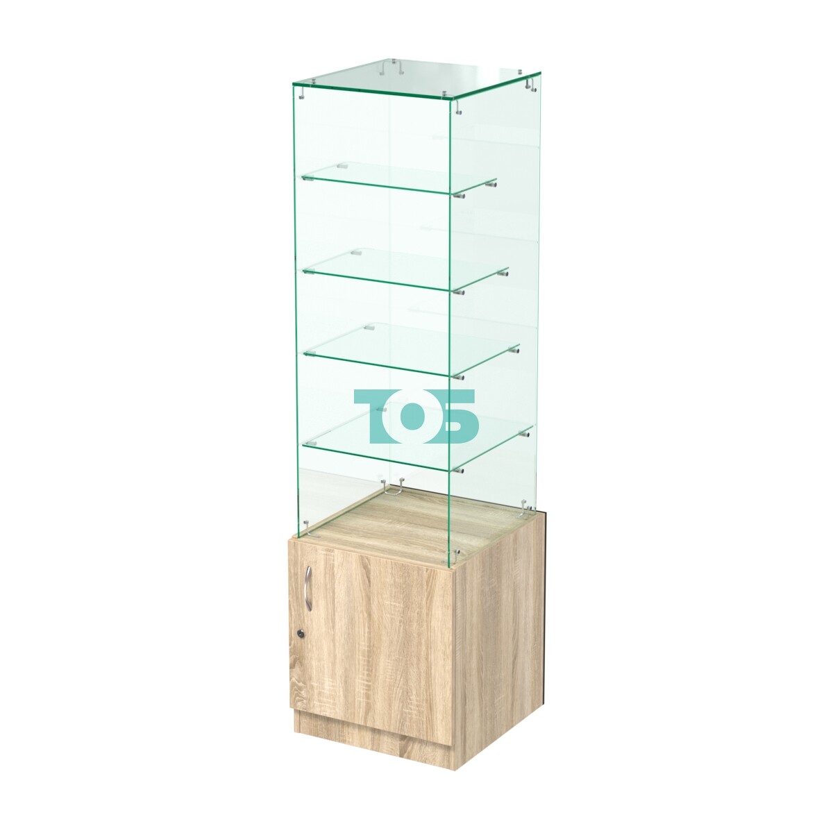 - со стороны продавца прозрачная часть открыта (дополнительно по желанию клиента может быть установлена распашная дверка с замком);