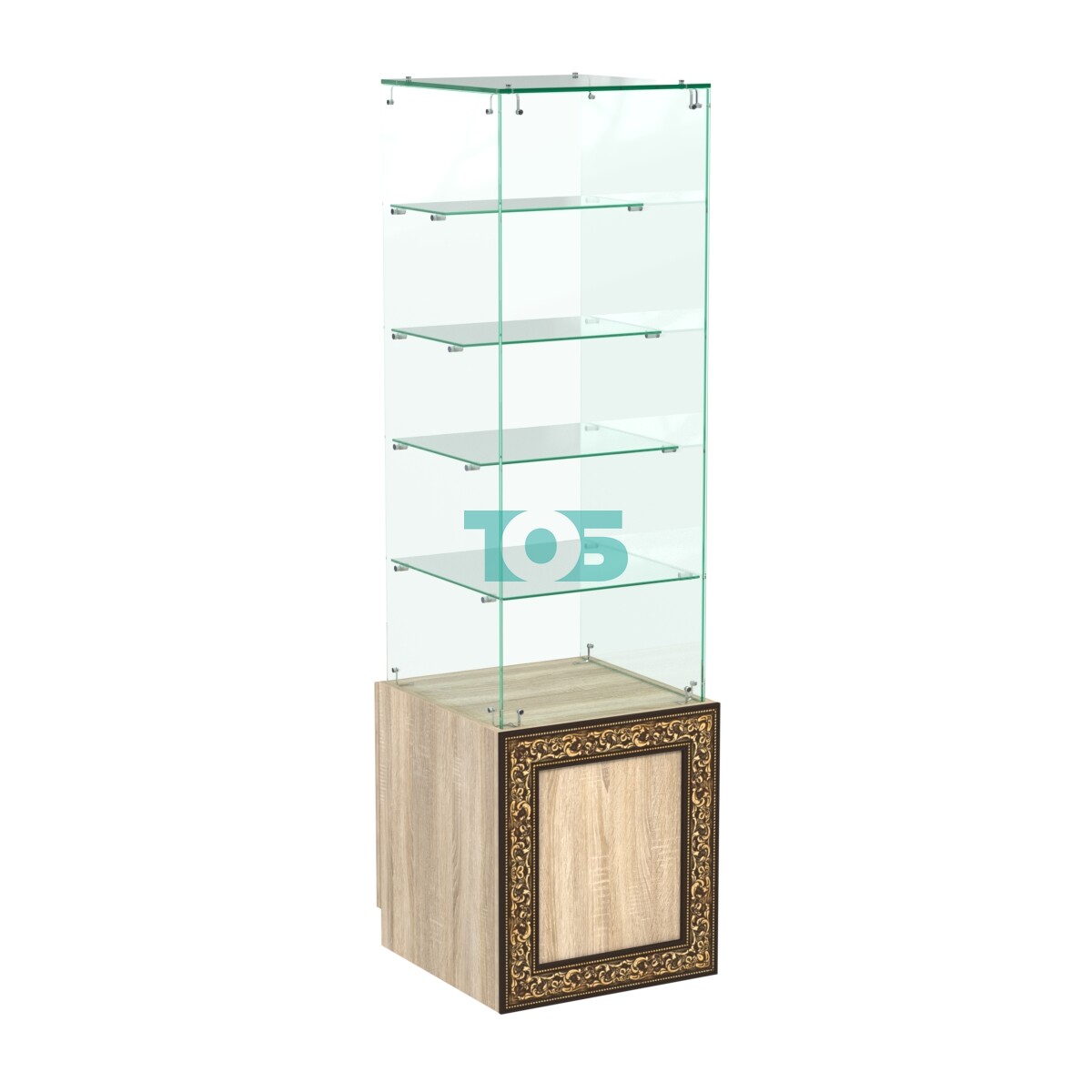 • Стеклянный прилавок с дверкой и декором №СПБА-208, Дуб Золотистый