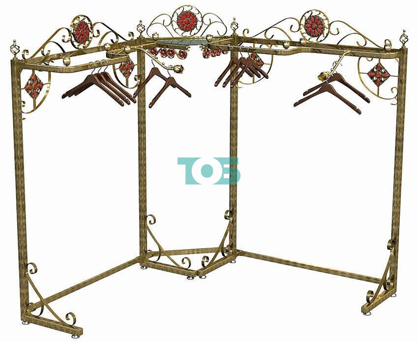 Главная Каталог Торговое оборудование с ковкой и декорами серии БАРОККО Торговая система для продажи одежды РУБИН Пристенные системы угловые РУБИН H1800 мм