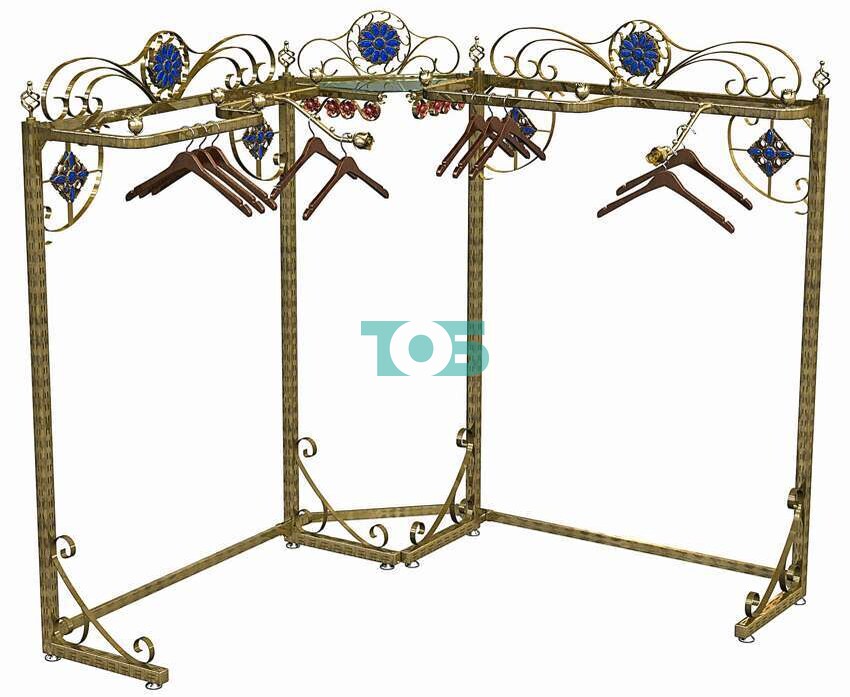 Главная Каталог Торговое оборудование с ковкой и декорами серии БАРОККО Торговая система для продажи одежды САПФИР Пристенные системы угловые САПФИР H1800 мм