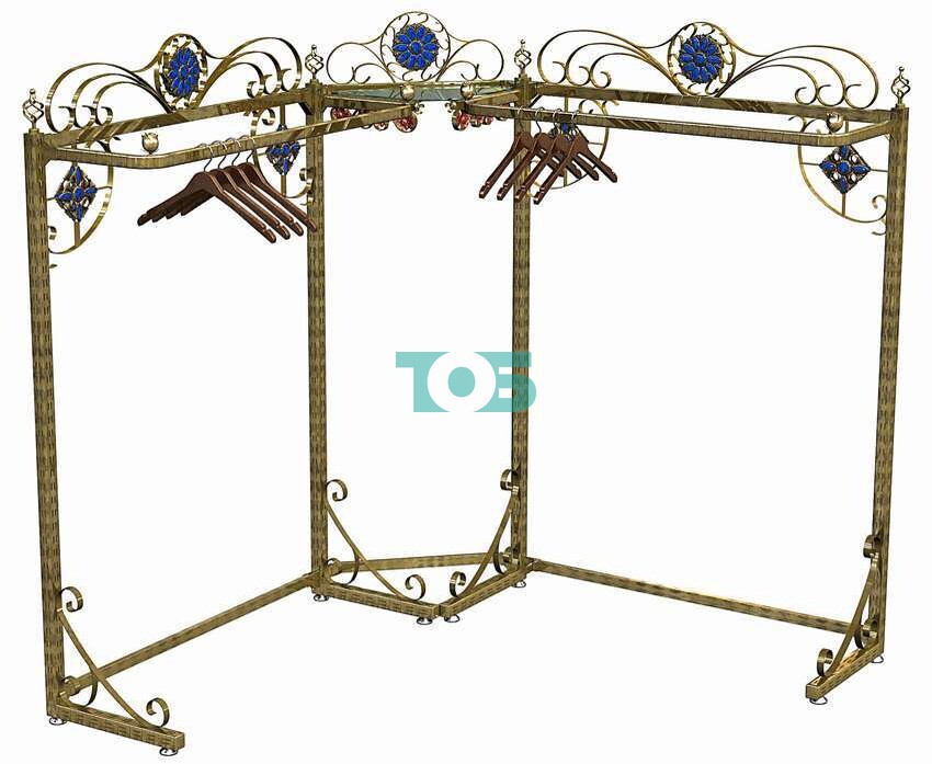Главная Каталог Торговое оборудование с ковкой и декорами серии БАРОККО Торговая система для продажи одежды САПФИР Пристенные системы угловые САПФИР H1800 мм