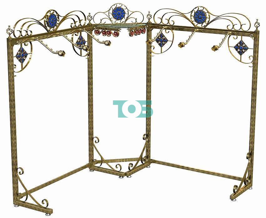 Главная Каталог Торговое оборудование с ковкой и декорами серии БАРОККО Торговая система для продажи одежды САПФИР Пристенные системы угловые САПФИР H1800 мм