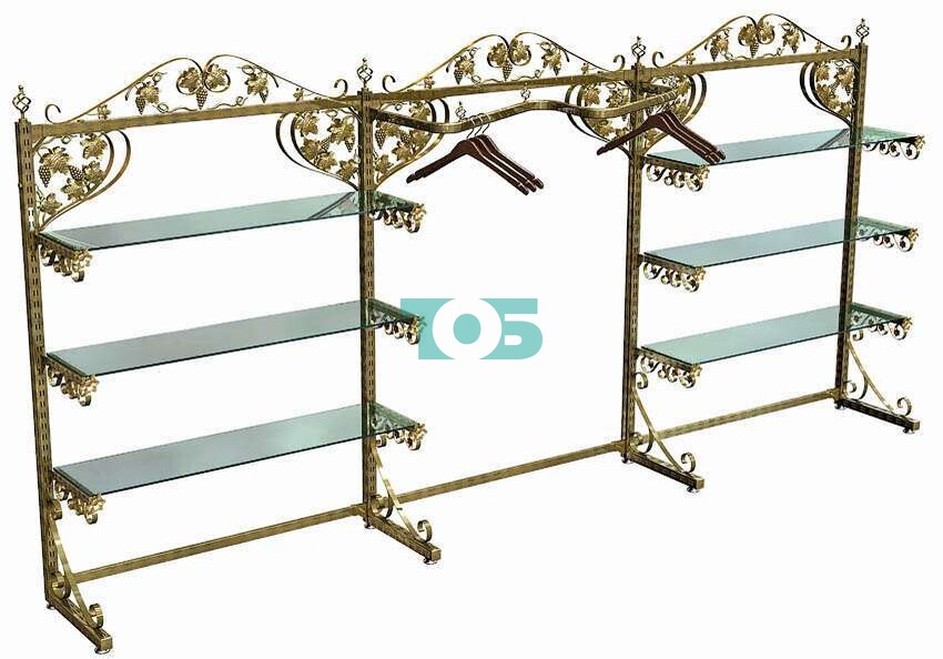 Главная Каталог Торговое оборудование с ковкой и декорами серии БАРОККО Торговая система для продажи одежды ВИНОГРАДНАЯ ЛОЗА Пристенные системы ВИНОГРАДНАЯ ЛОЗА 1800х3600 мм