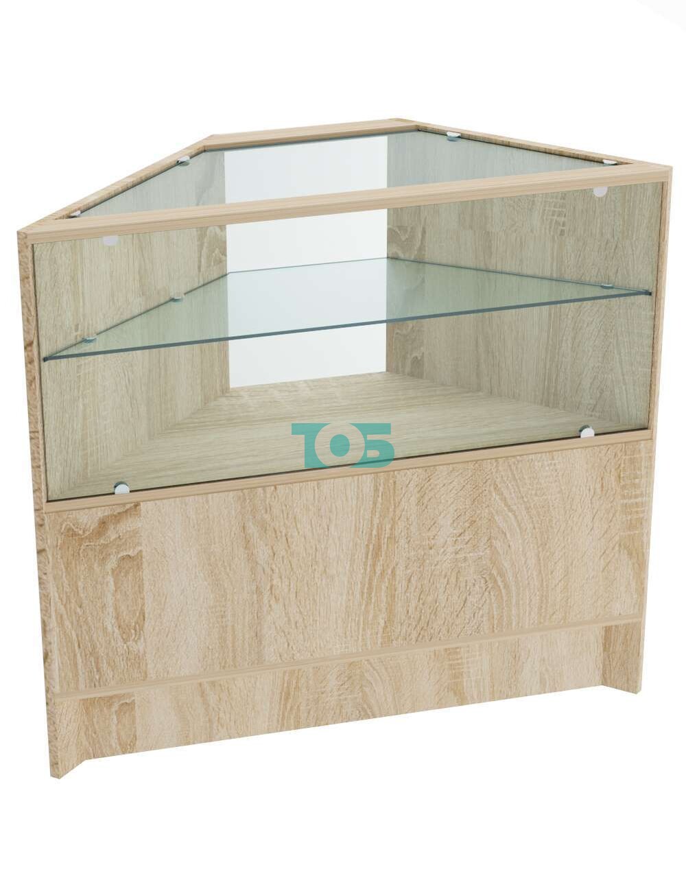 Торговый прилавок низкий шестигранный с декоративной накладкой и двумя полками серии ТРЕУГОЛЬНИК №37