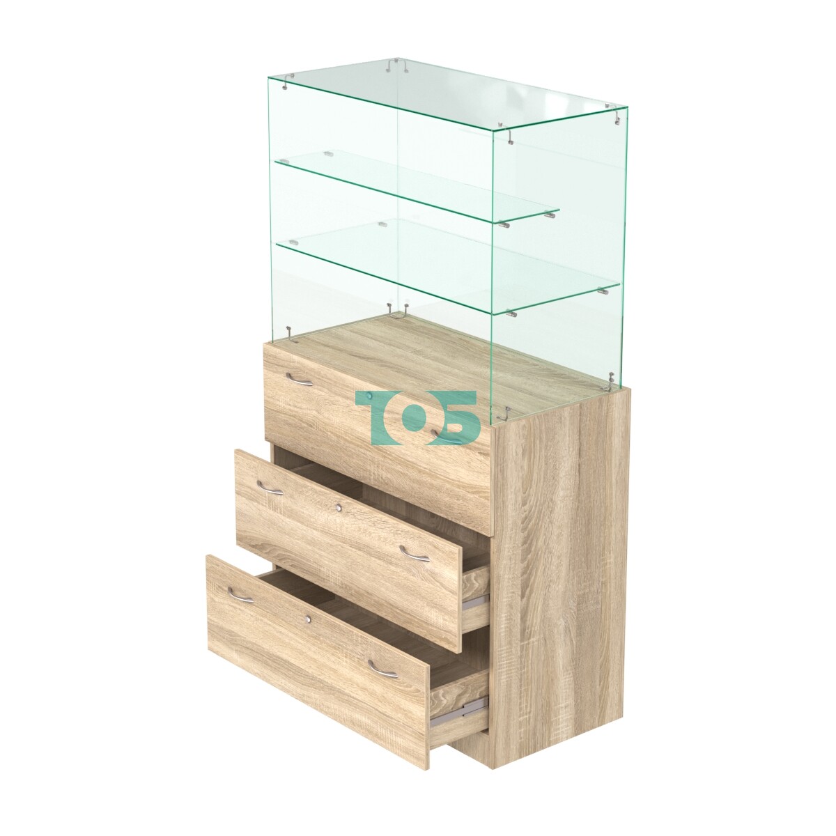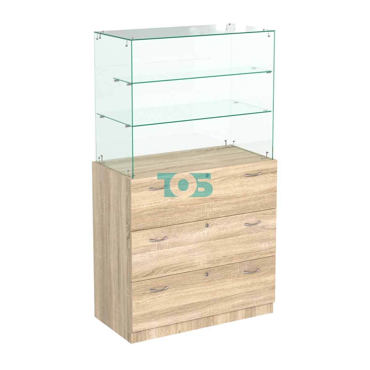 - Две стеклянные полки, расположенные "лесенкой" глубиной 400-200 мм;