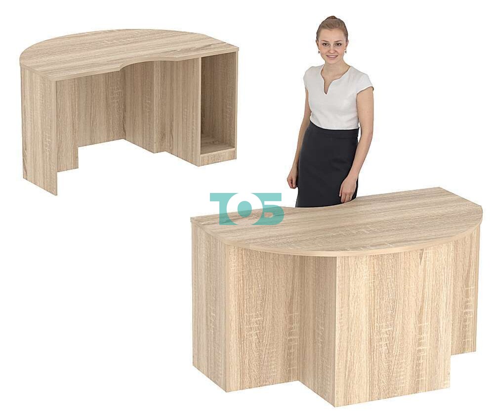 Форма: Прямоугольная форма с фасадным полукругом, что придаёт стойке уникальный и стильный вид, а также способствует оптимизации рабочего пространства.
