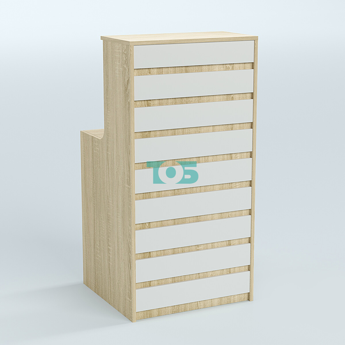 Ресепшен серии ПРАЙМ №2А представляет собой элегантное и функциональное решение для офисов и коммерческих пространств. Его узкая прямоугольная форма и продуманная конструкция делают его идеальным выбором для современных интерьеров, обеспечивая удобство работы и привлекательный внешний вид.