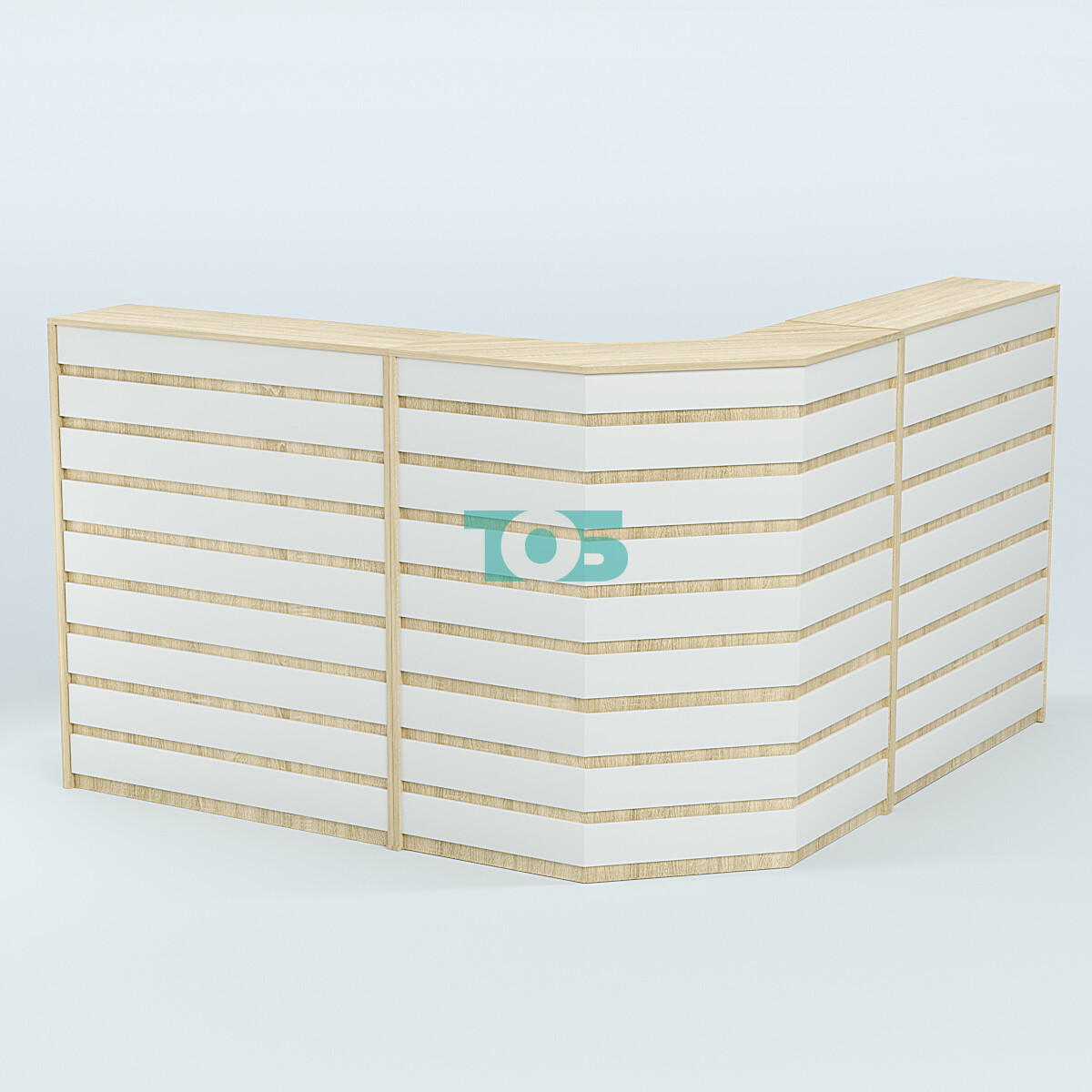 Ресепшен серии ПРАЙМ №5А угловой станет отличным дополнением к вашему офису или торговому залу, обеспечивая как функциональность, так и эстетическую привлекательность. Сделайте шаг навстречу комфорту и стилю, выбрав наше торговое оборудование.