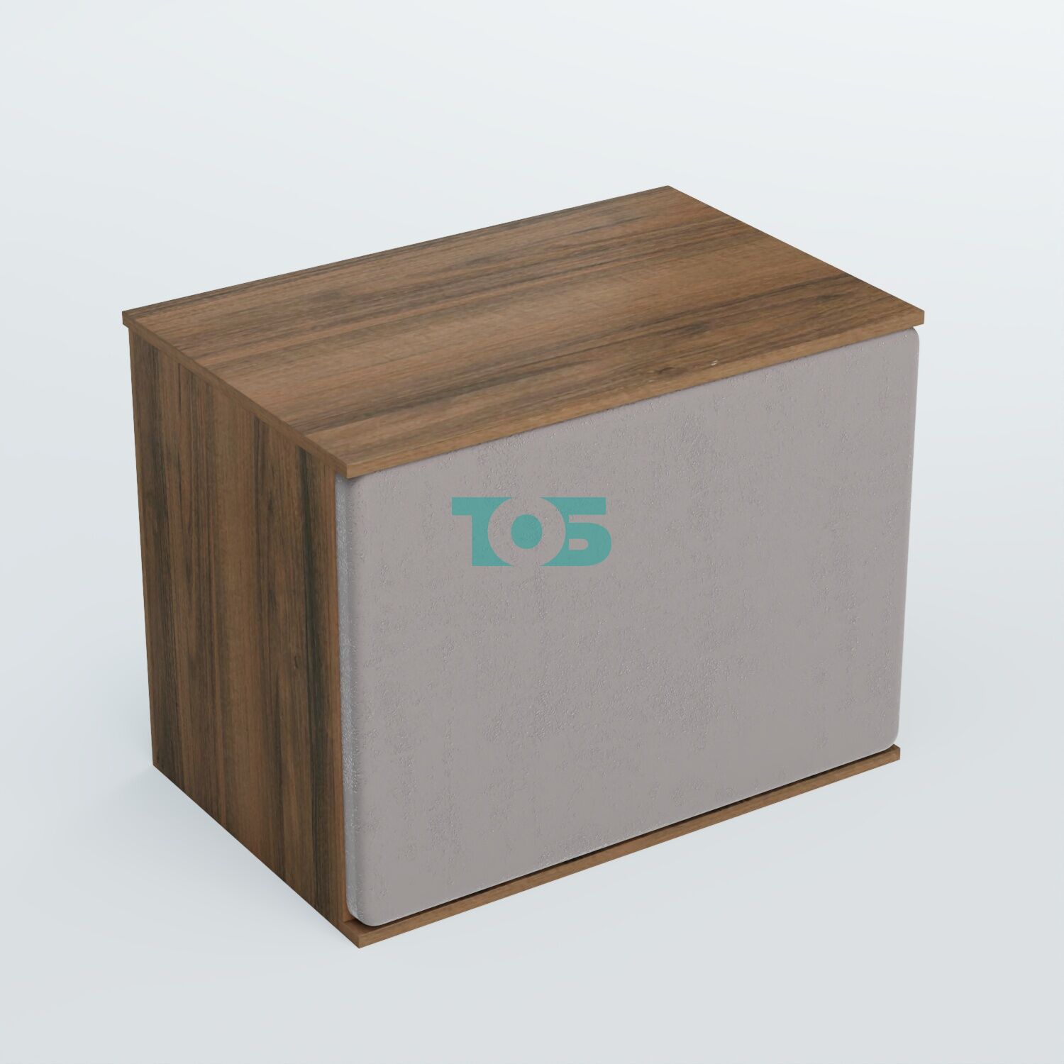 Фронтальная часть стола декорирована обивкой из серого велюра под бархат, что придает изделию роскошный и изысканный вид.