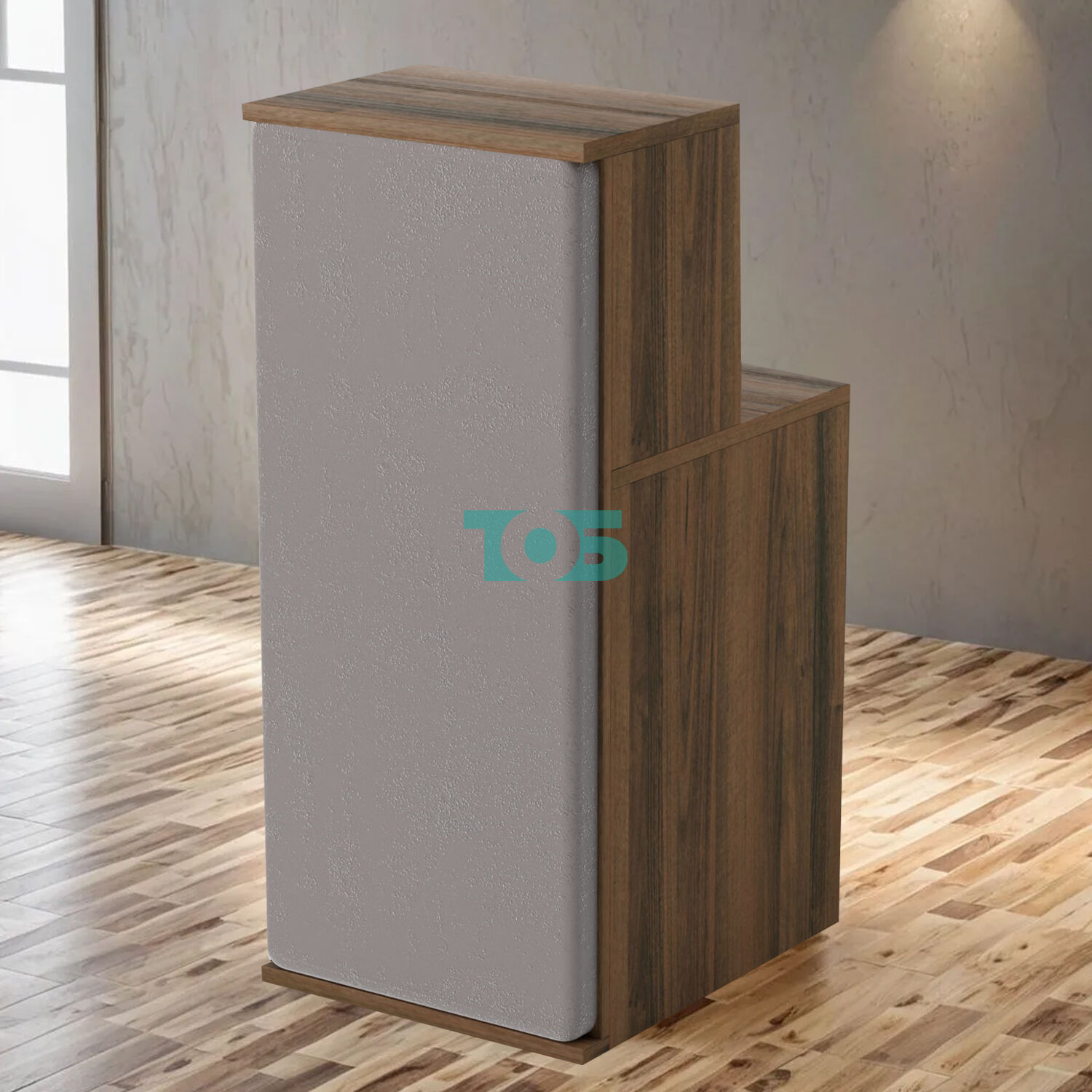 Ресепшен БАРОН №2 представляет собой стильное и элегантное решение для оформления ресепшен-зоны. Этот продукт сочетает в себе простоту ровной поверхности с роскошным декором из серого велюра под бархат, что делает его идеальным выбором для тех, кто ценит минимализм и изысканность в дизайне.