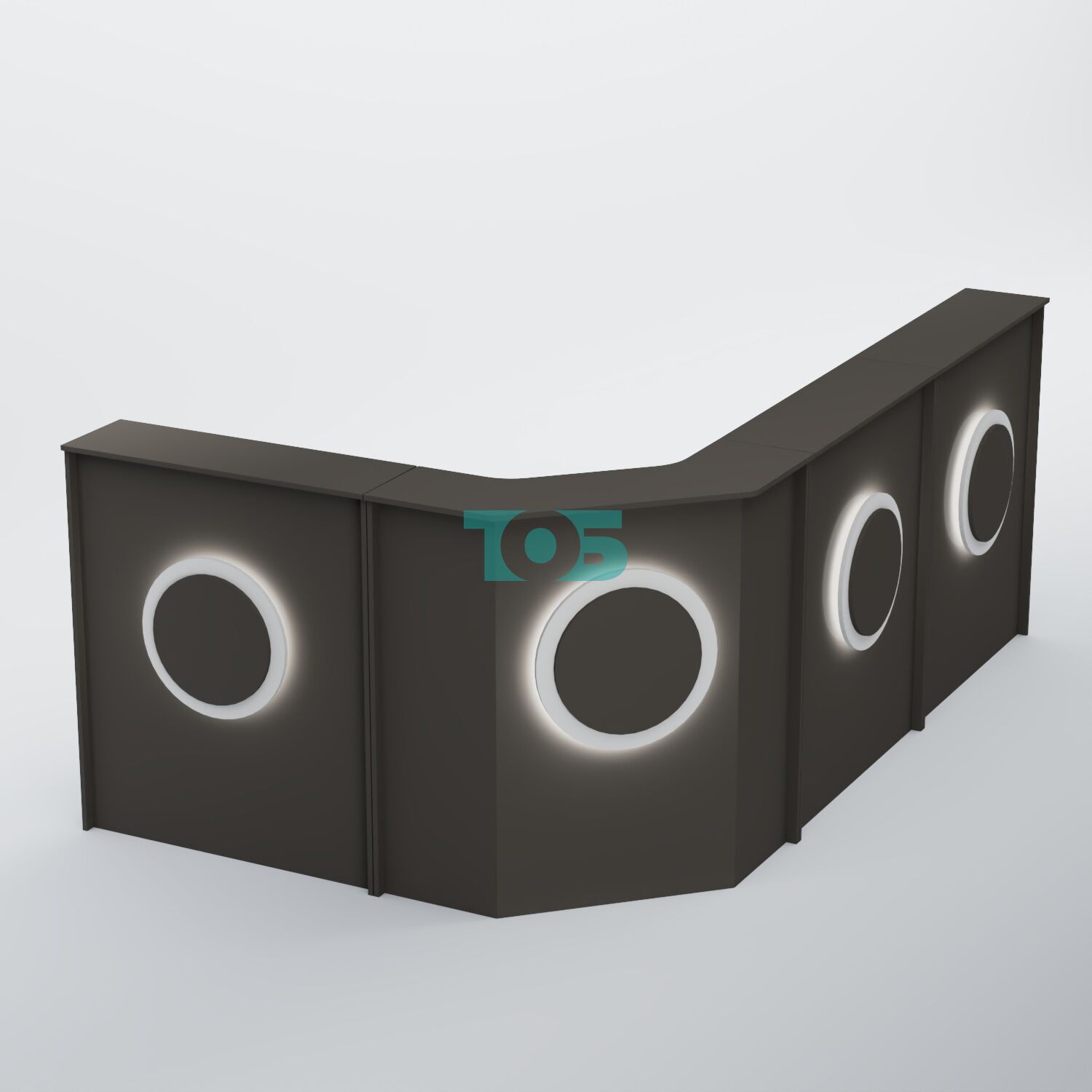 Ресепшен угловой большой сКРУГ №4 — это монументальное и стильное решение для оформления ресепшен-зоны в просторных офисах, торговых центров и других коммерческих помещений. Эта модель сочетает в себе внушительный дизайн и функциональность, что делает её идеальным выбором для создания впечатляющей и удобной рабочей среды.