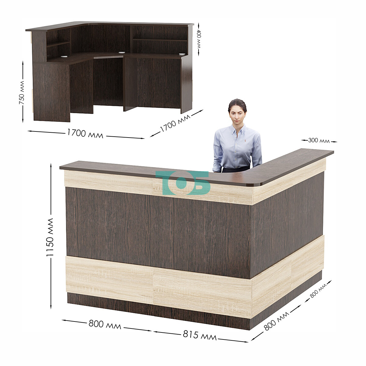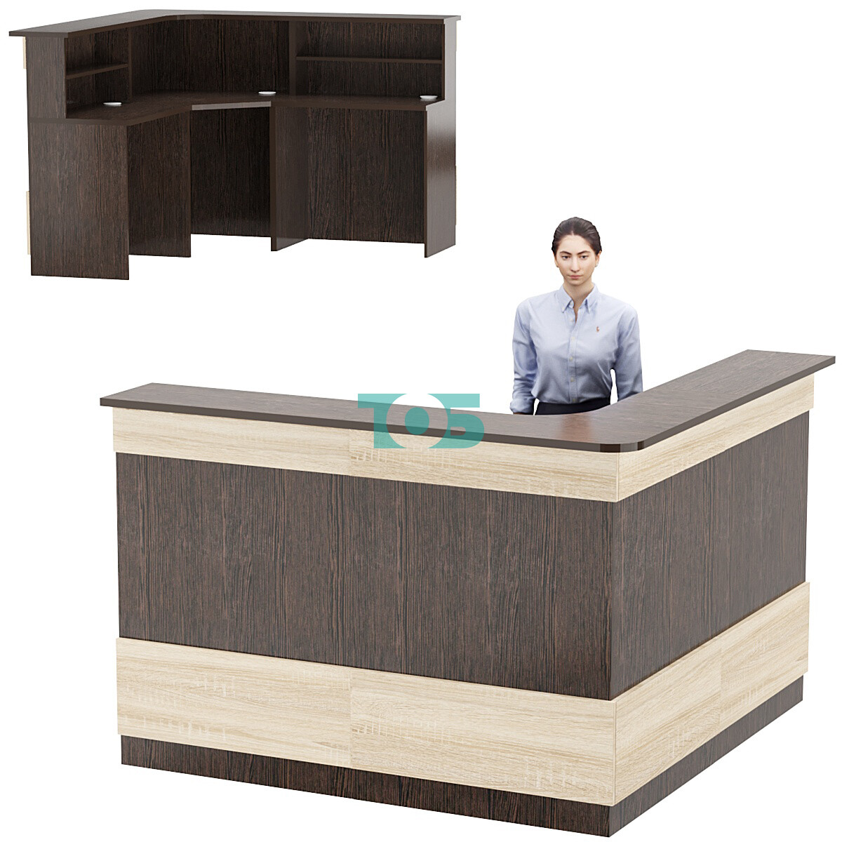 Комбинация ресепшенов Сеть №1-4-1 — это продуманное и стильное решение для создания многофункциональной и элегантной зоны ресепшена. Сочетание двух ресепшенов Сеть №1 и одного углового ресепшена Сеть №4 позволяет организовать пространство эффективно и эстетично, идеально подходя для современных офисов и административных помещений.
