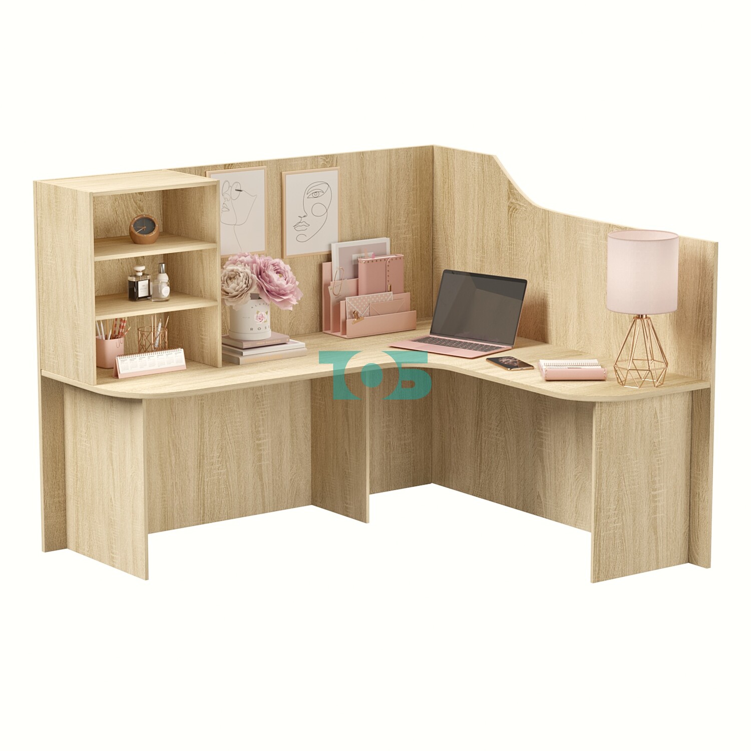Ресепшен универсальный №2Б левосторонний является отличным выбором для тех, кто стремится создать стильное и функциональное пространство для встречи гостей и работы персонала. Его прочная конструкция, продуманные элементы хранения и уникальный дизайн делают его незаменимым элементом любого офиса. Этот ресепшен не только улучшит организацию вашего рабочего пространства, но и подчеркнет профессионализм и внимание к деталям вашего учреждения.