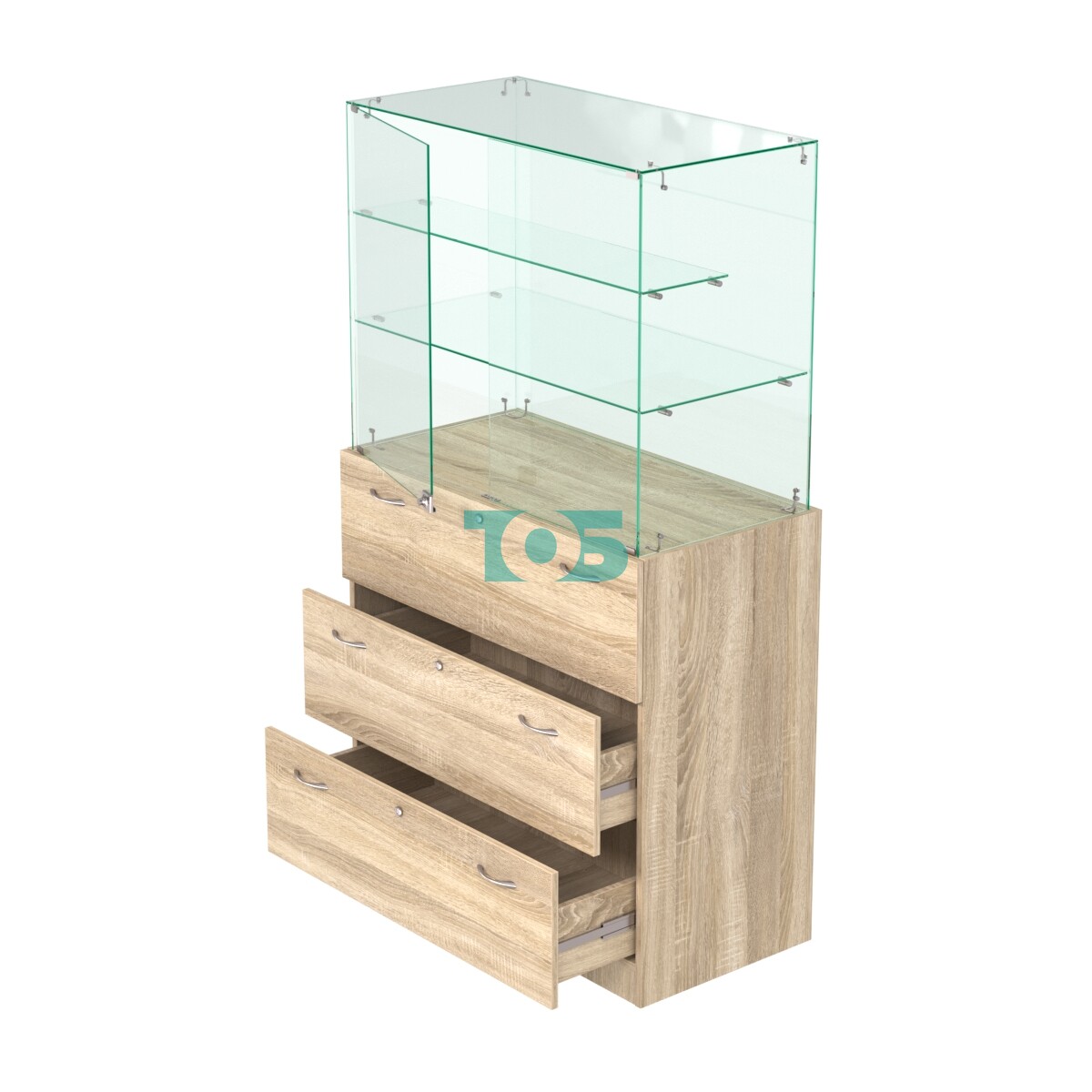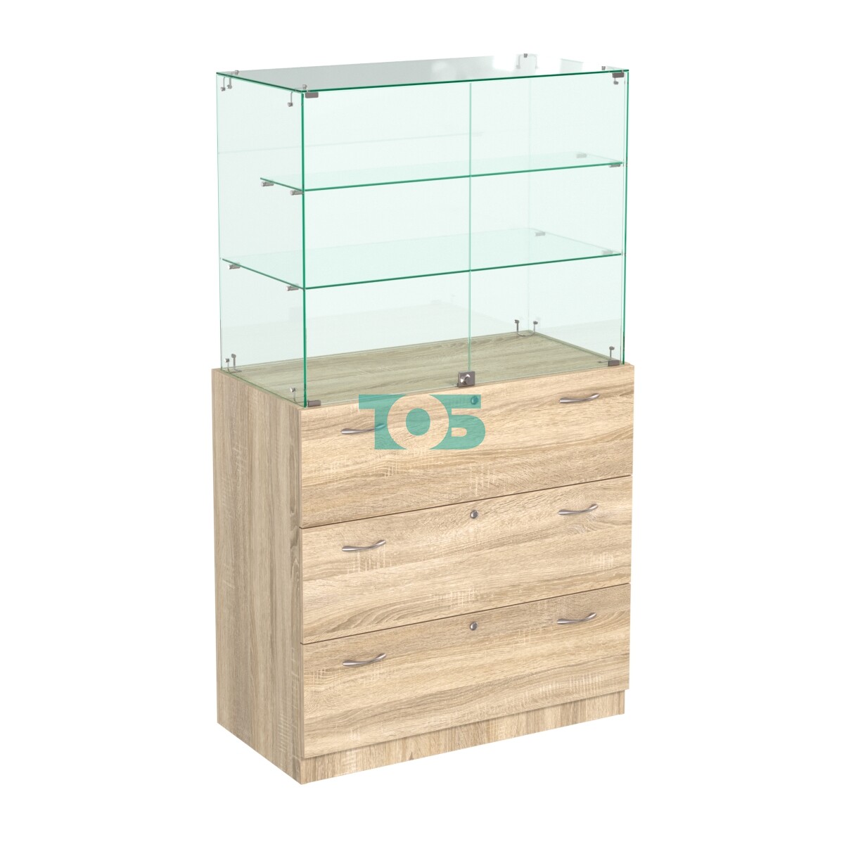 - Две стеклянные полки, расположенные "лесенкой" глубиной 400-200 мм;