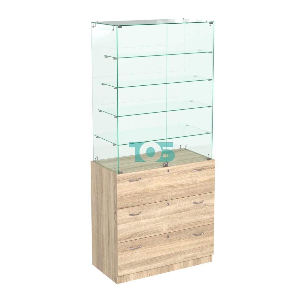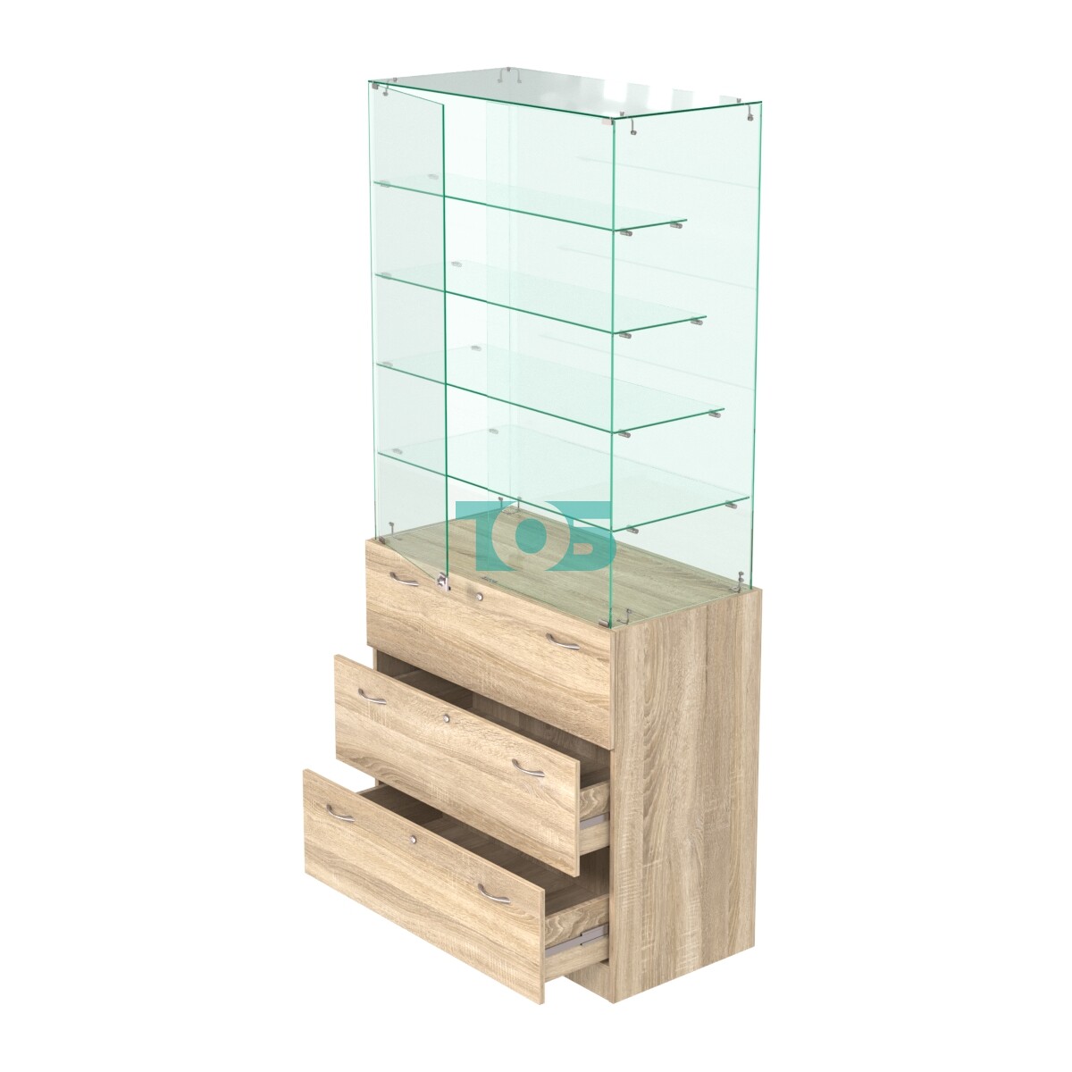 Отличия модели прилавка с четырьмя стеклянными полками и выдвижными ящиками Селена №109: