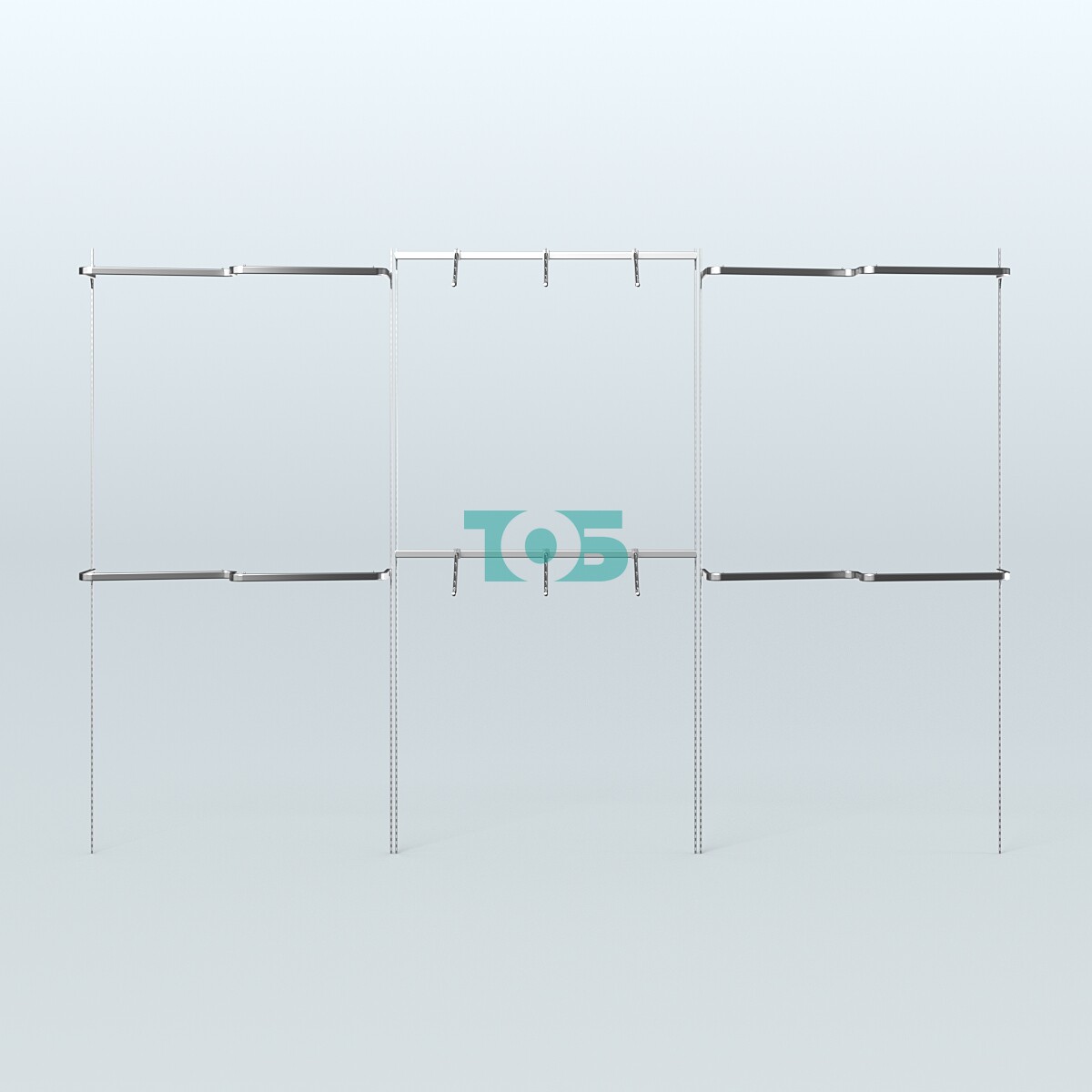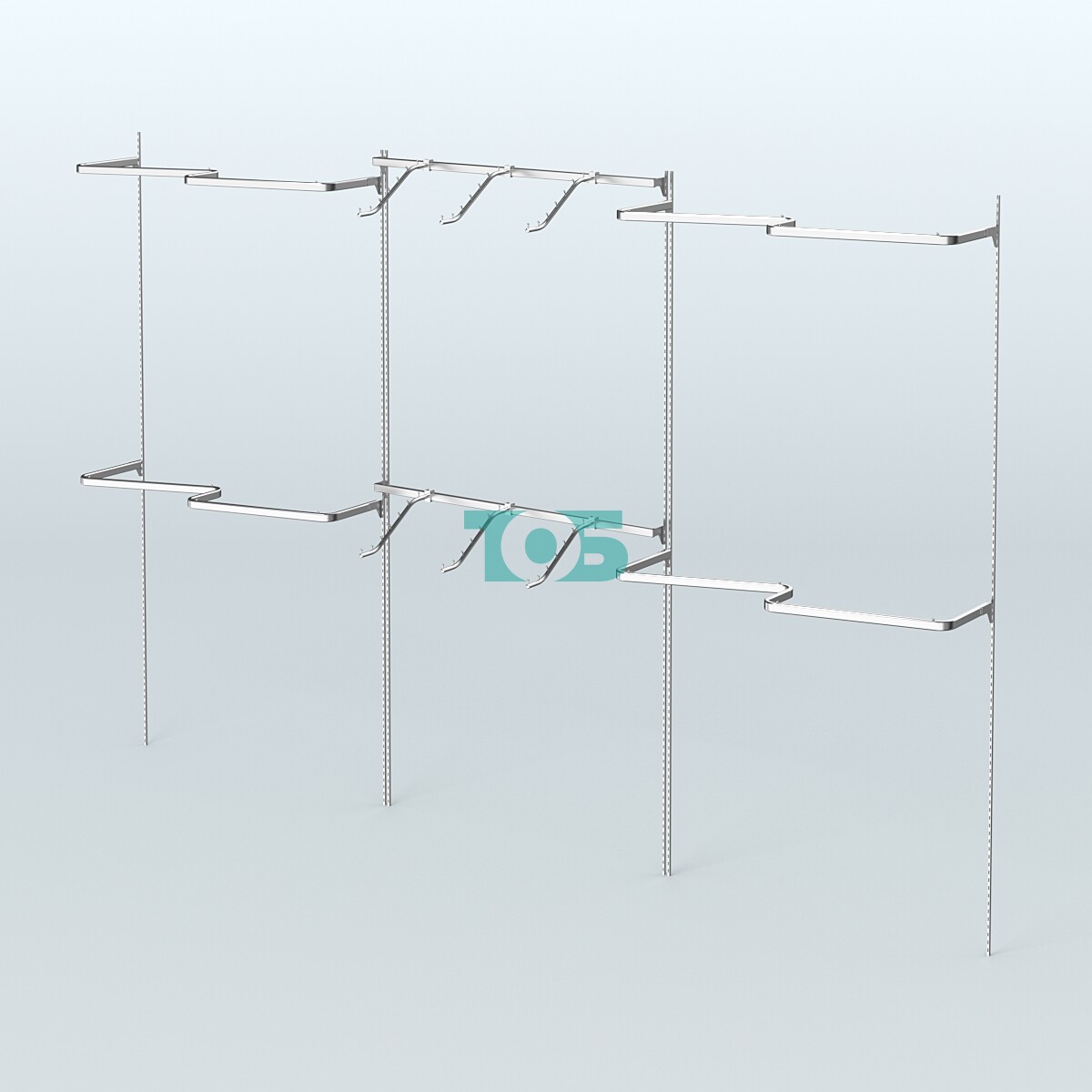В основе системы Neo Fix - тонкие хромированные перфорированные стойки, которые крепятся непосредственно к стене (при помощи саморезов и дюбелей).