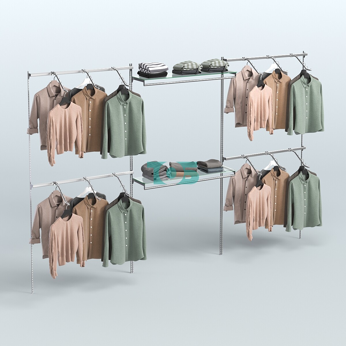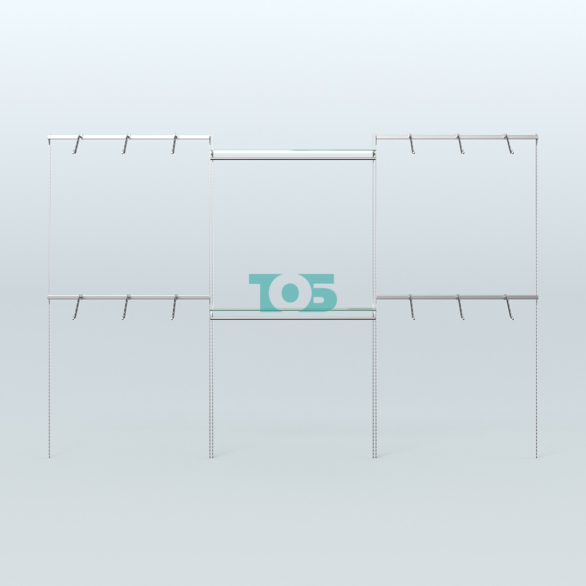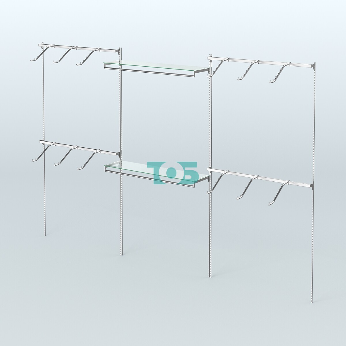 В основе системы Neo Fix - тонкие хромированные перфорированные стойки, которые крепятся непосредственно к стене (при помощи саморезов и дюбелей).