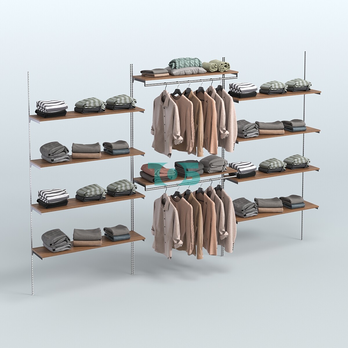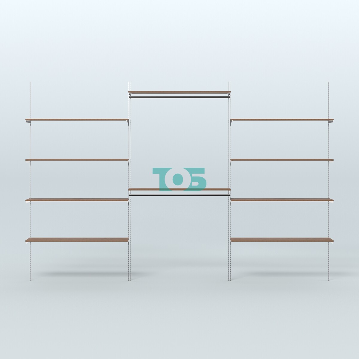 - 8-ю прямоугольными полками ДСП 16 мм размером 1200х300 мм.