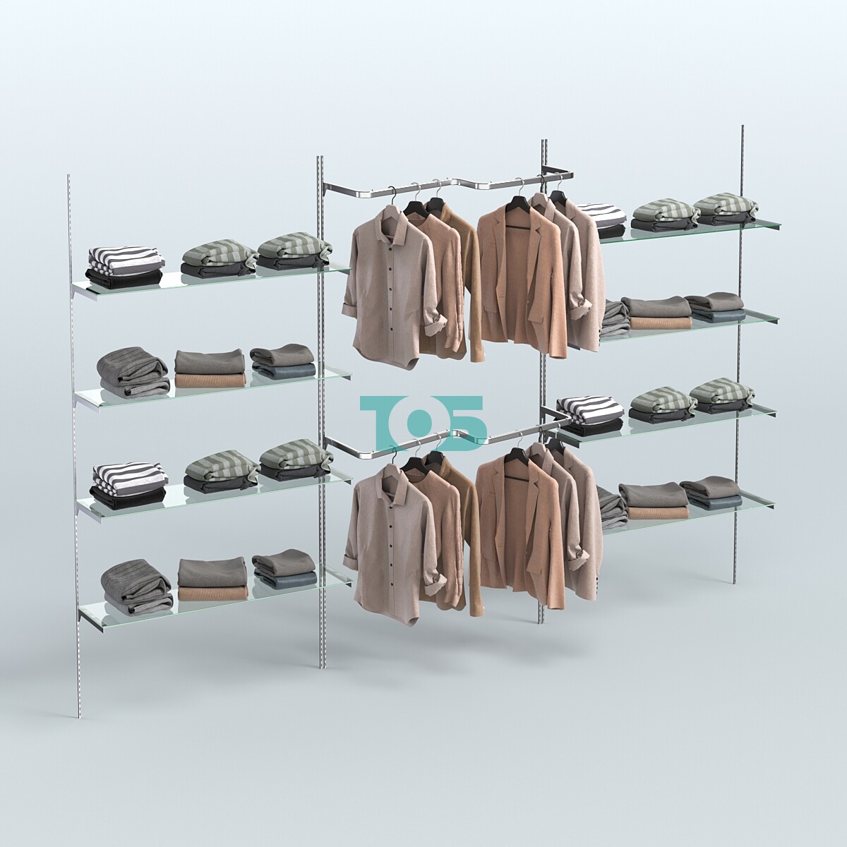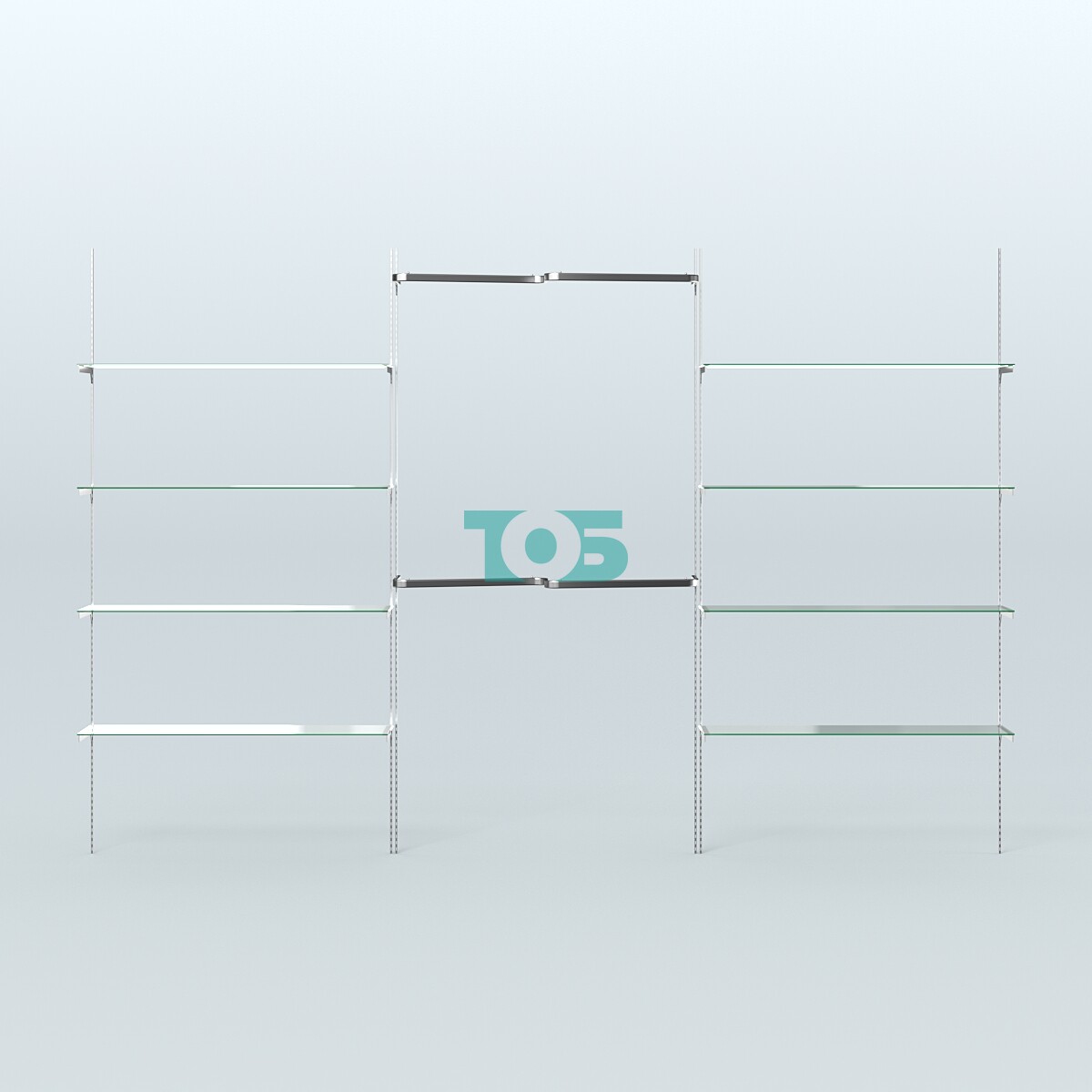 - 8-ю прямоугольными полками СТЕКЛО 6 мм размером 1200х300 мм.