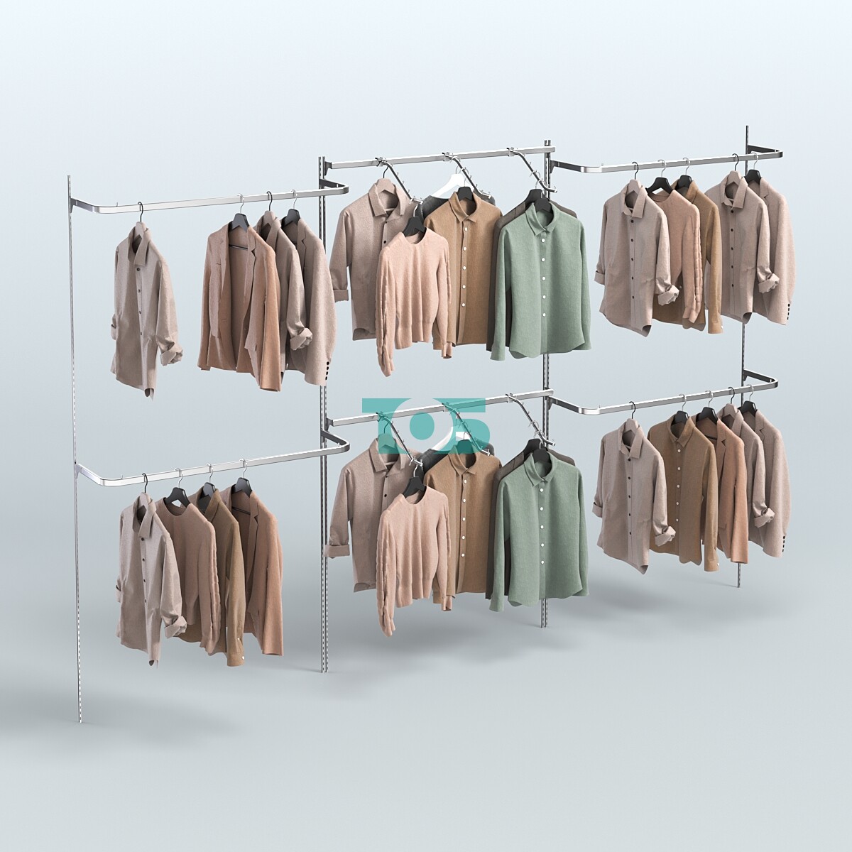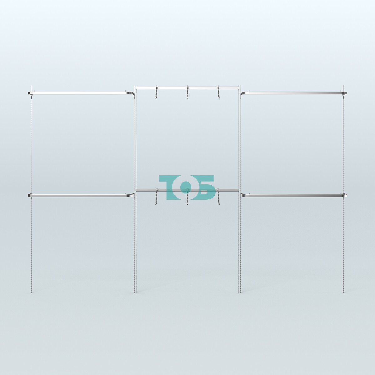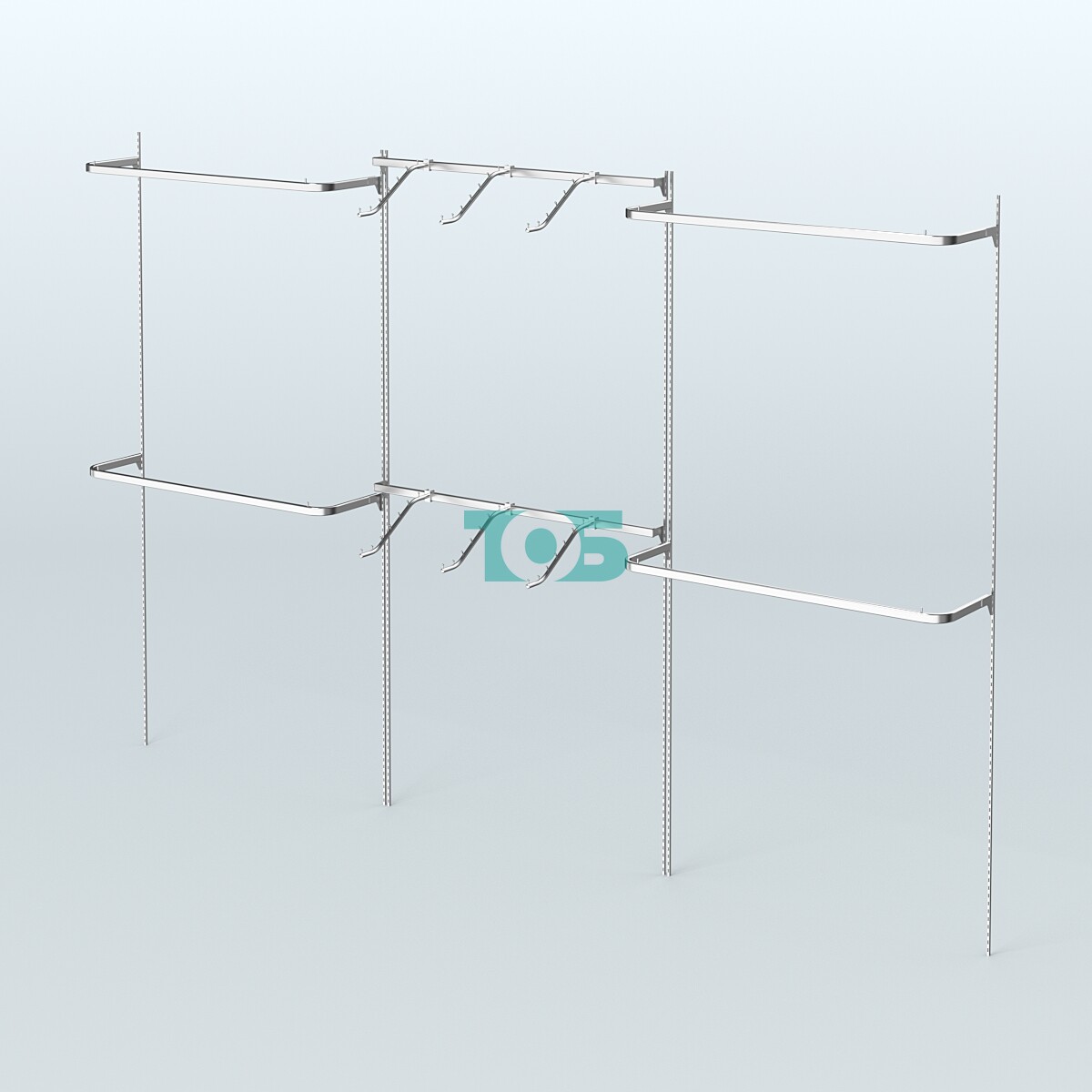 В основе системы Neo Fix - тонкие хромированные перфорированные стойки, которые крепятся непосредственно к стене (при помощи саморезов и дюбелей).