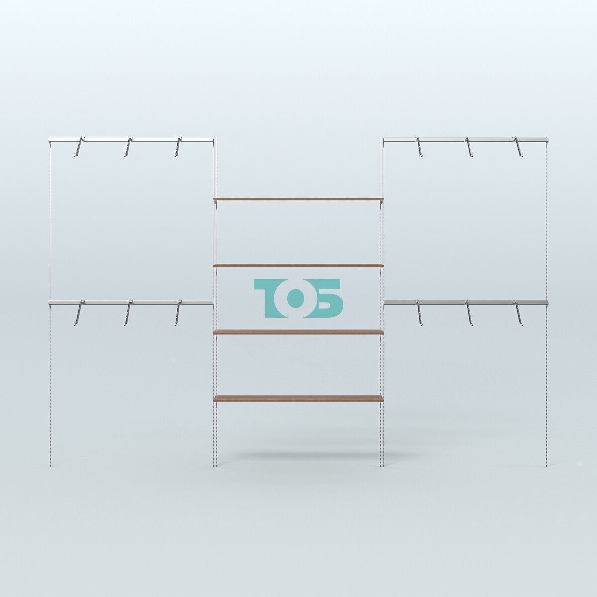 В основе системы Neo Fix - тонкие хромированные перфорированные стойки, которые крепятся непосредственно к стене (при помощи саморезов и дюбелей).