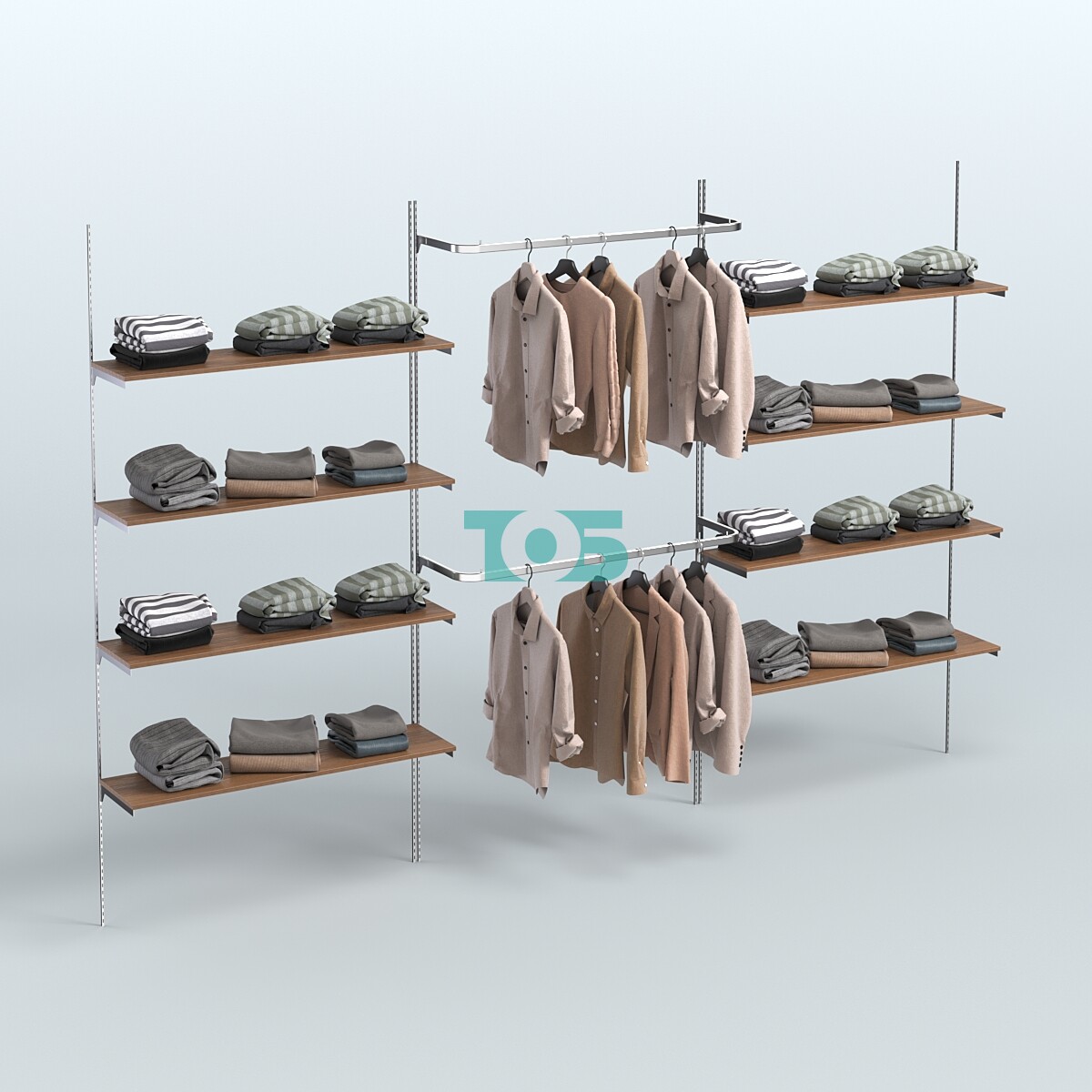 - 8-ю прямоугольными полками ДСП 16 мм размером 1200х300 мм.