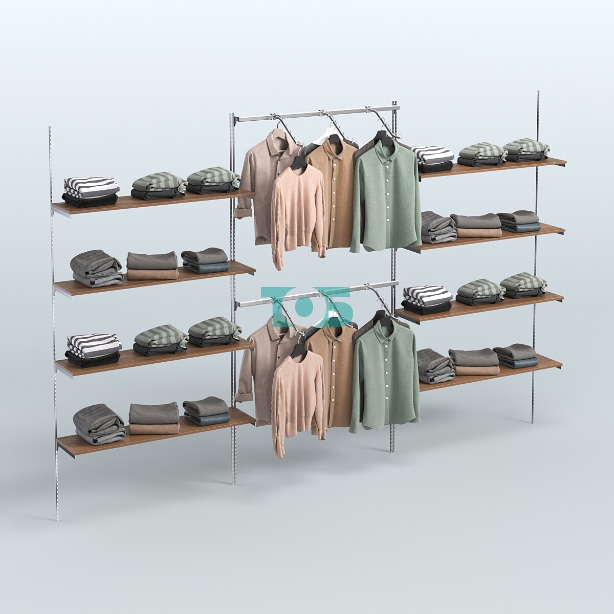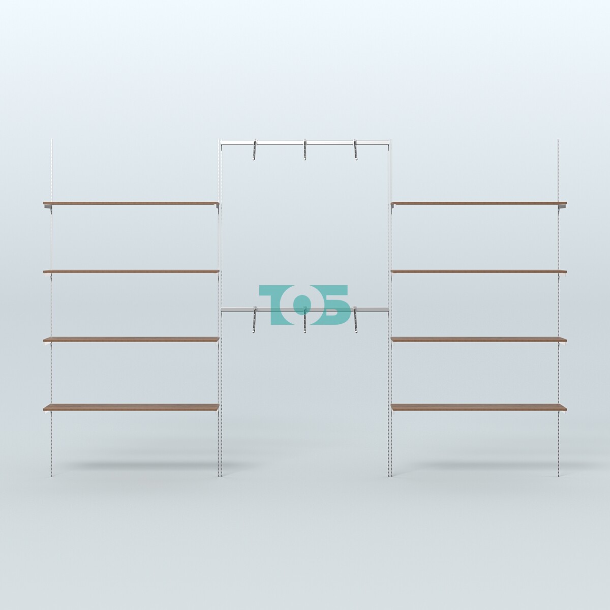В основе системы Neo Fix - тонкие хромированные перфорированные стойки, которые крепятся непосредственно к стене (при помощи саморезов и дюбелей).