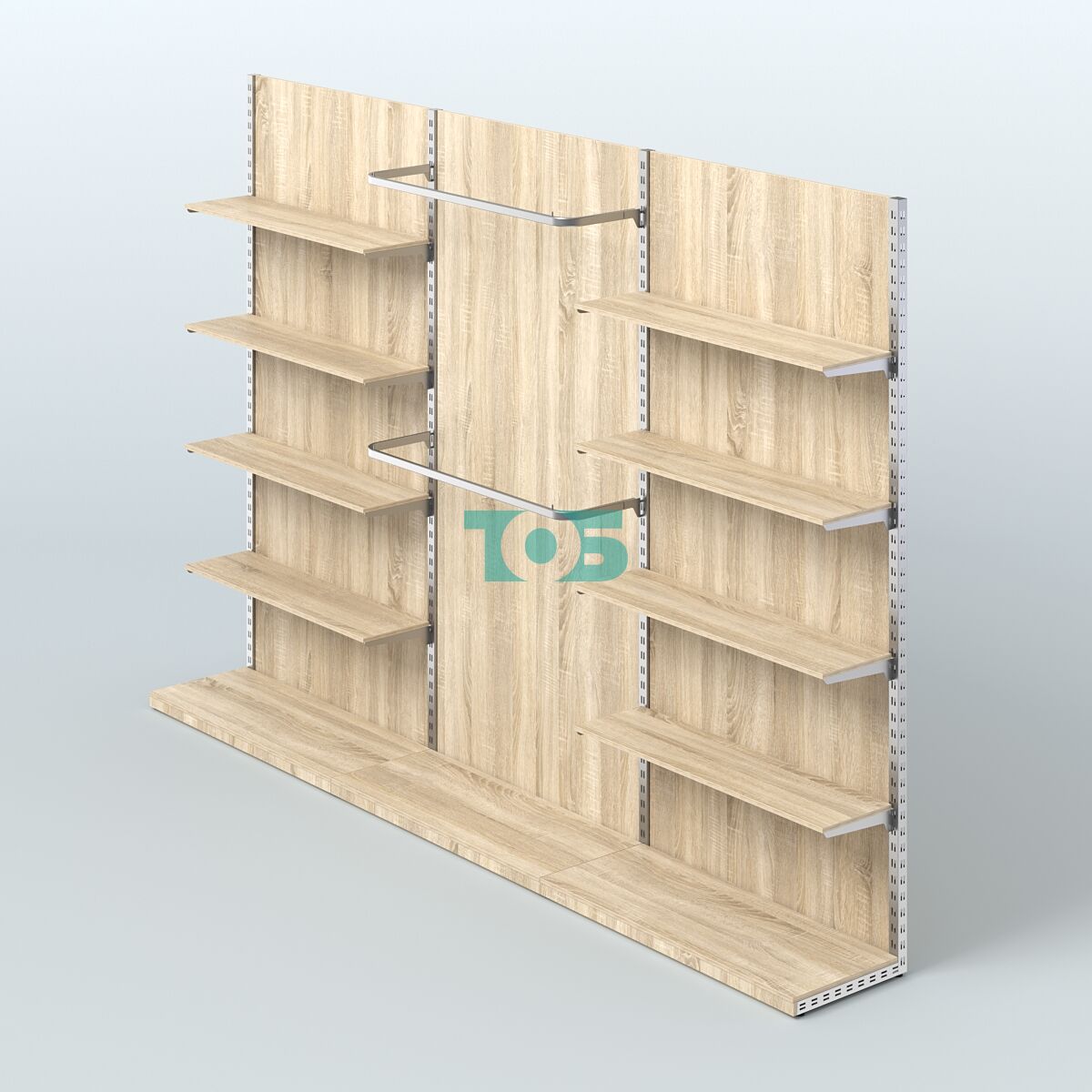 - 8-ю прямоугольными полками ДСП 16 мм размером 1200 х 300 мм,