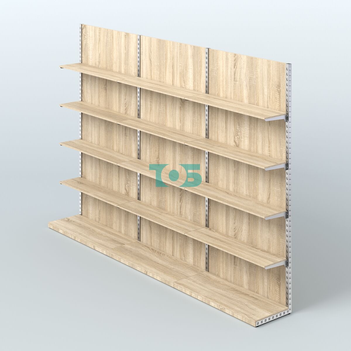 - 12-ю прямоугольными полками ДСП 16 мм размером 1200 х 300 мм,