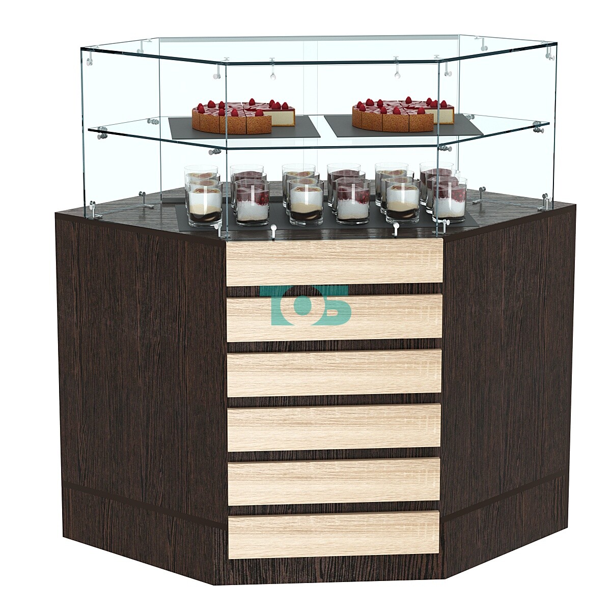 • Торговый прилавок внутреннего угла с фасадными панелями №15Э-01, Дуб Венге