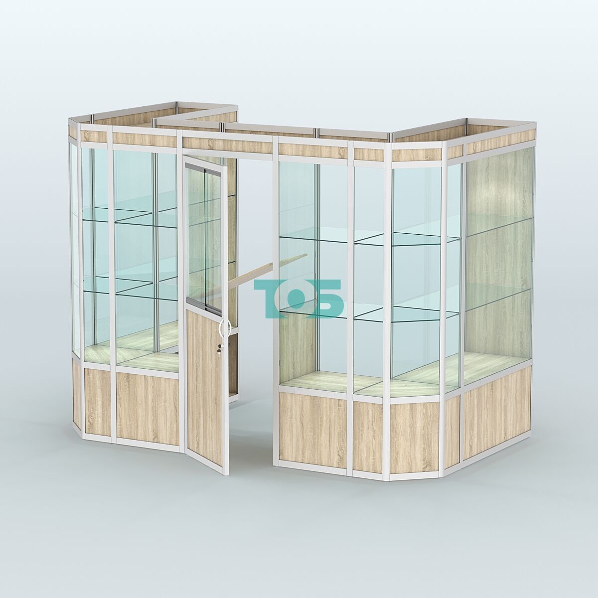 Полки: две стеклянные полки с каждой стороны, которые можно регулировать по высоте, что позволяет адаптировать пространство под различные нужды.