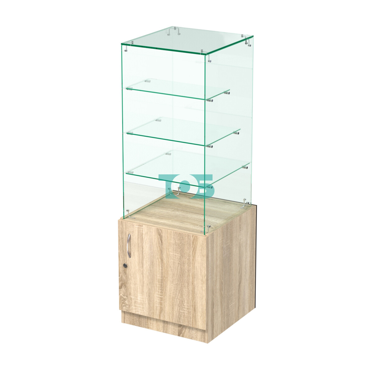 - со стороны продавца прозрачная часть открыта (дополнительно по желанию клиента может быть распашная дверка с замком);