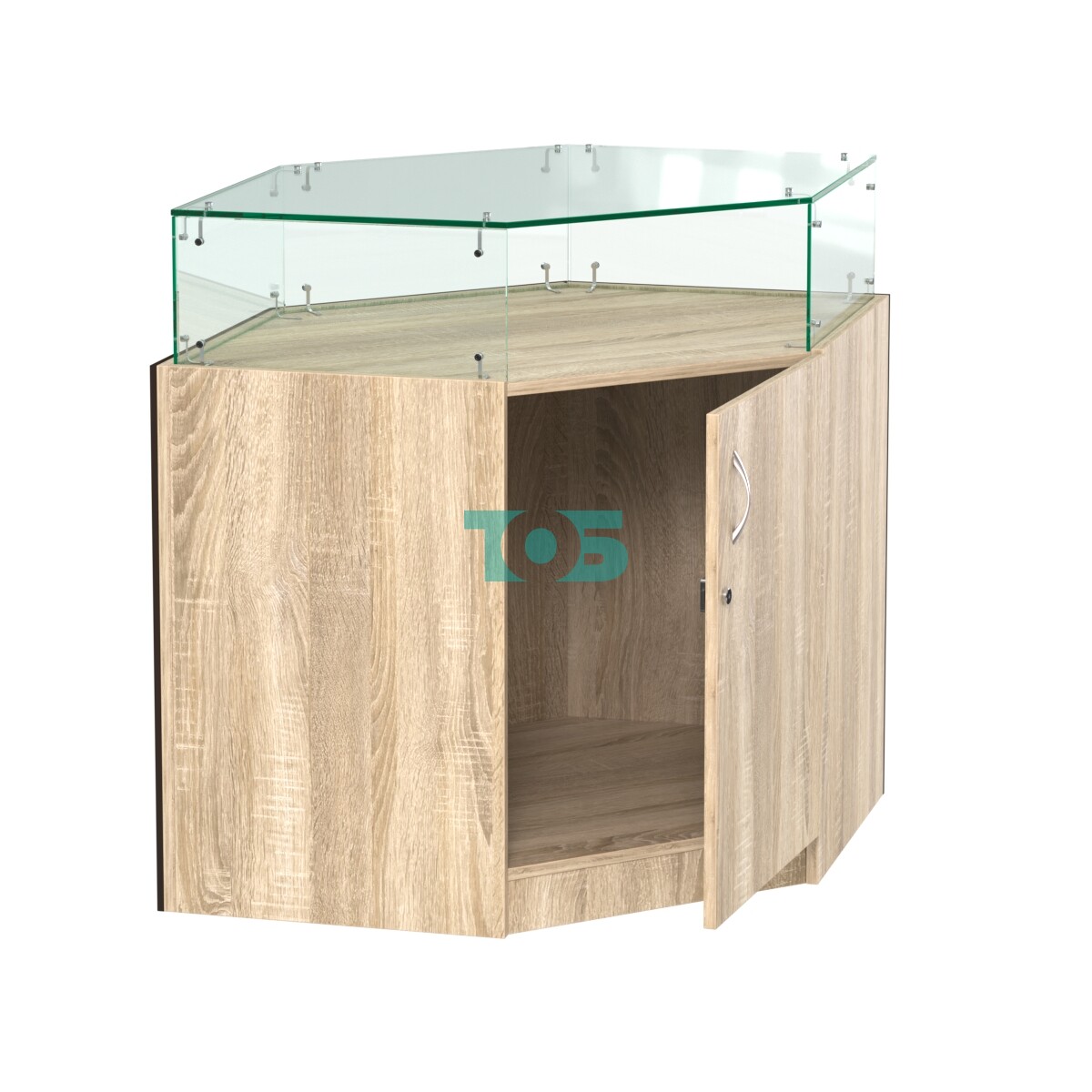 - со стороны продавца прозрачная часть открыта (дополнительно по желанию клиента может быть установлена распашная дверка с замком);