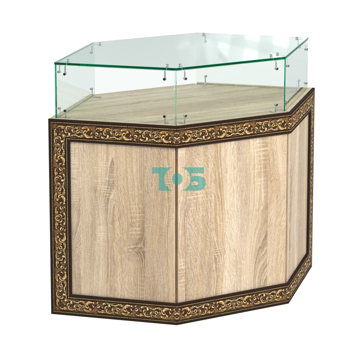 Отличия модели стеклянного шестигранного прилавка с декором №СПБА-16: