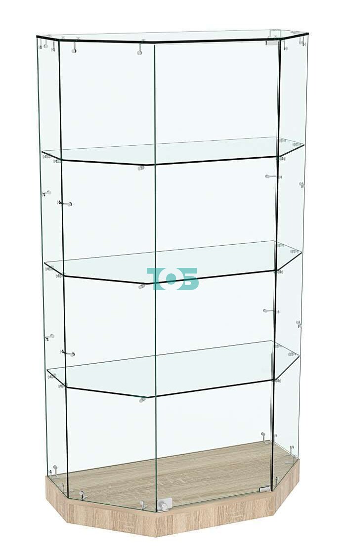 - стеклянная витрина Истра трапеция имеет два скошенных прозрачных торца, что позволяет избежать образования острых углов при установке витрины в выставочном зале и обеспечивает лучший обзор товара;