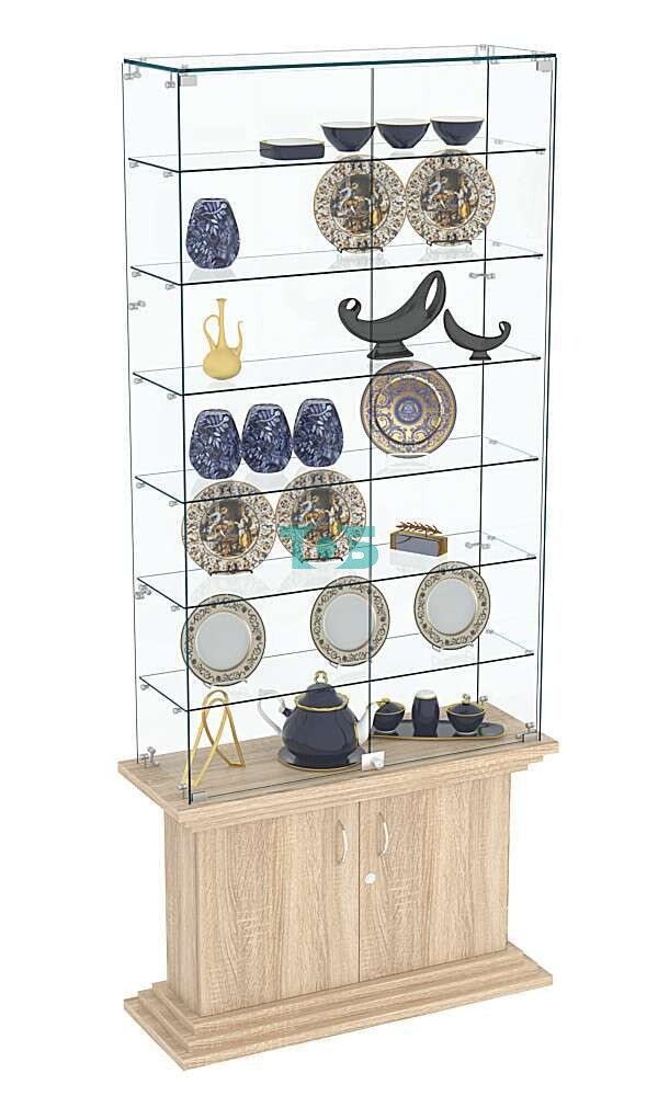 - основание витрины представляет из себя три платформы ДСП 25мм, установленных в пирамидальной форме друг на друга;