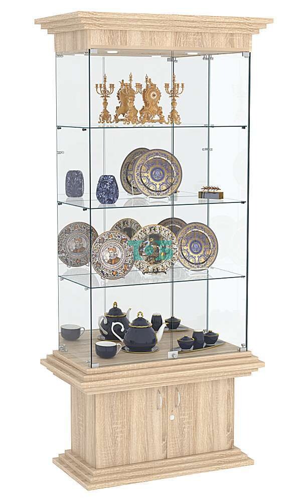 присутствует верхняя подсветка, обеспечивающая равномерное освещение выставленных предметов.