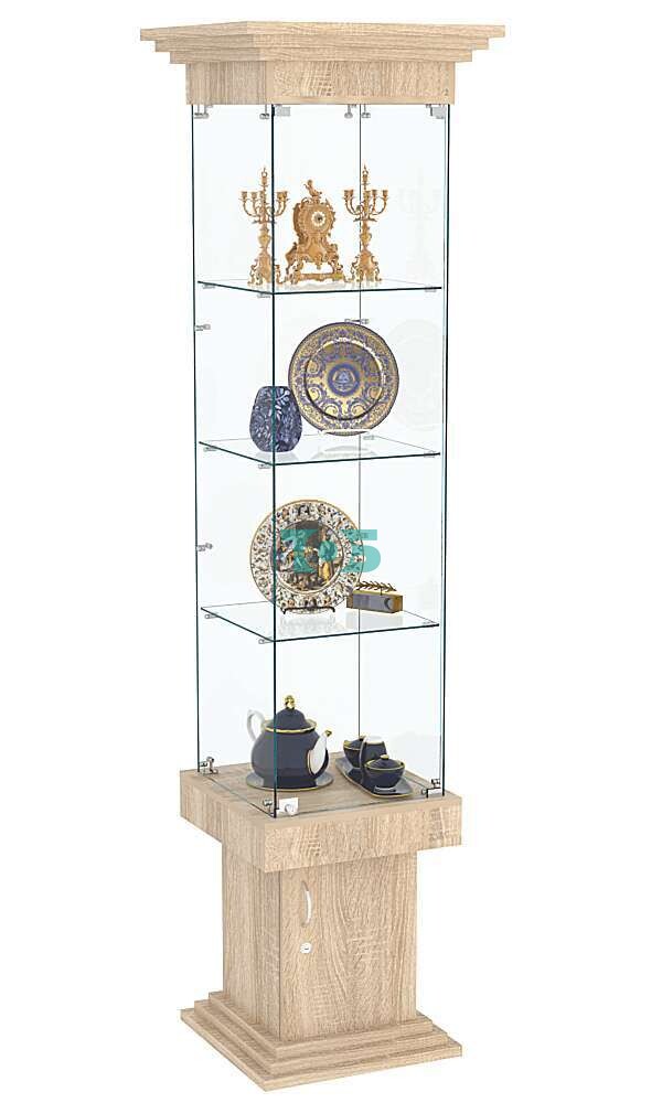 основание витрины состоит из трёх платформ ДСП толщиной 25 мм, установленных в пирамидальной форме друг на друга;