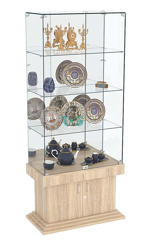 в прозрачной части витрины установлены распашные стеклянные двери с замком;