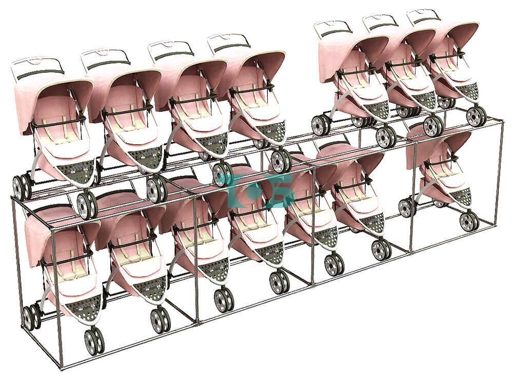 Отличия модели стеллажа h-1200 для детских колясок отдельностоящого №4 (длина 5,1 метра):